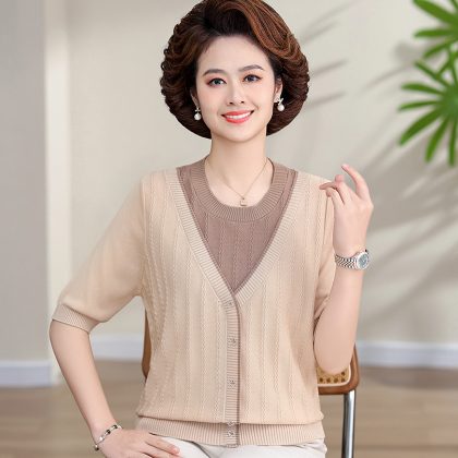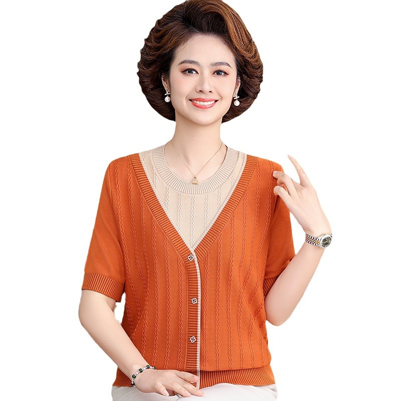 | nameOriginal | Middle-aged Mother Summer Short-sleeved Shirt Fashionable Western Style Ice Silk Shirt Middle-aged and Elderly Women's Summer Loose Thin Top |
