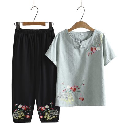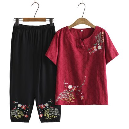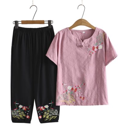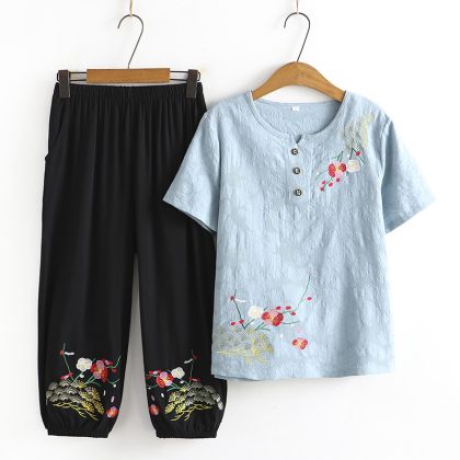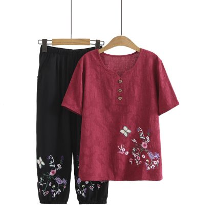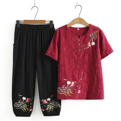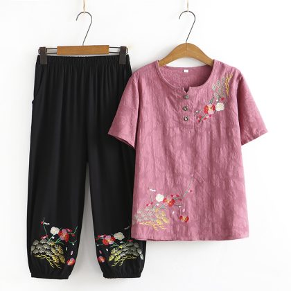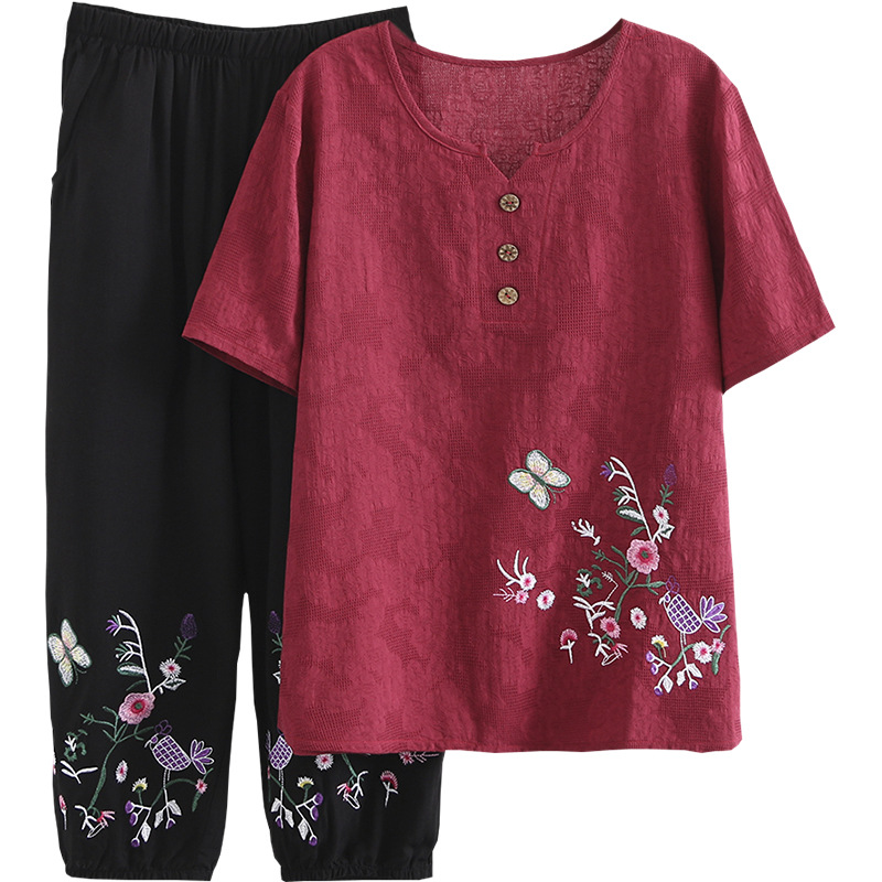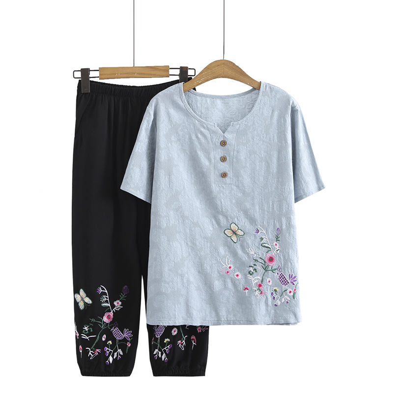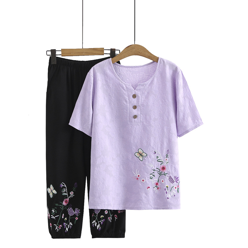 | nameOriginal | Middle-aged Mother Summer suit Cotton Fashion Embroidered Loose Stylish Top Short-sleeved Two-piece Set Middle-aged and Elderly Women's Clothing |