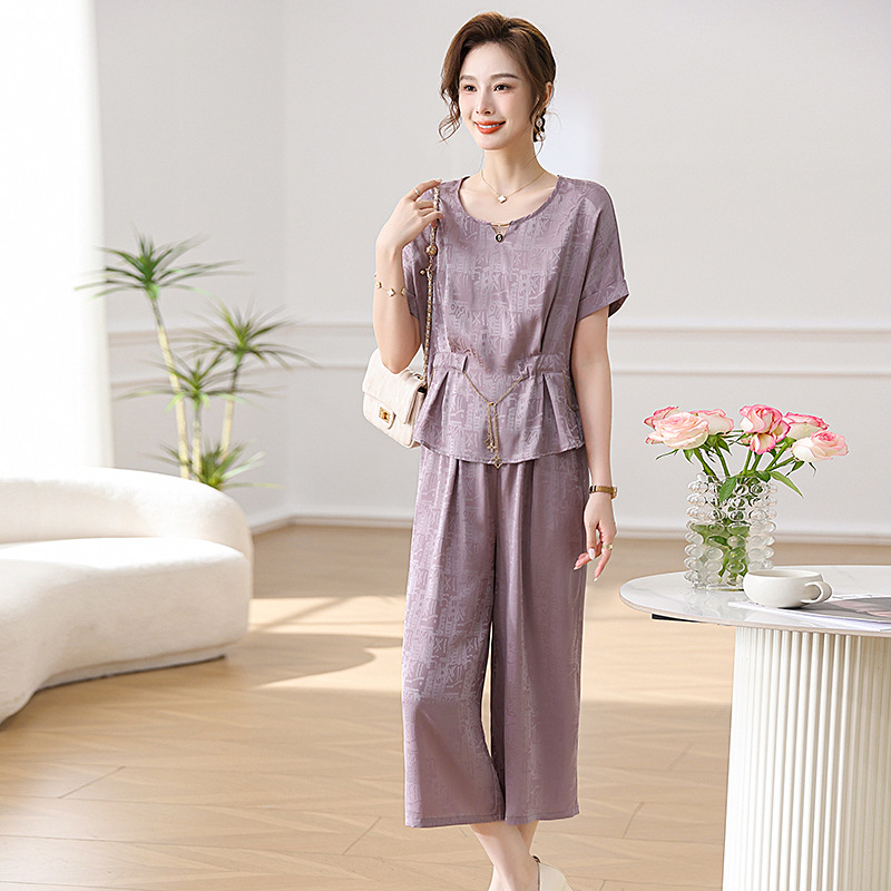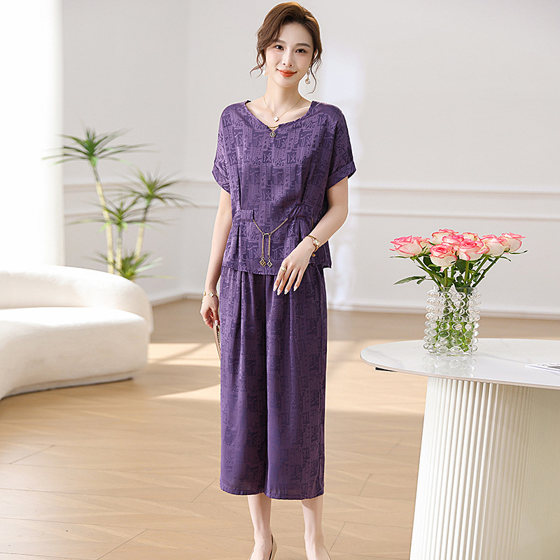 | nameOriginal | Middle-aged mother summer suit foreign style 2024 new middle-aged women's summer jacket short sleeve chiffon two-piece set |