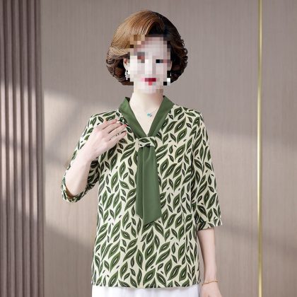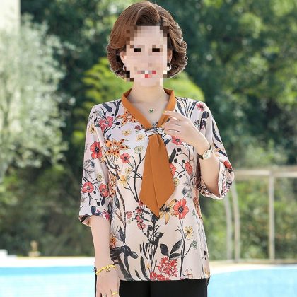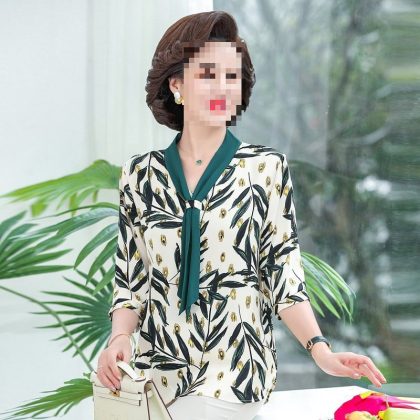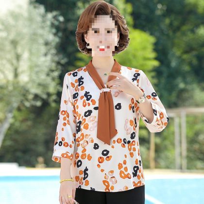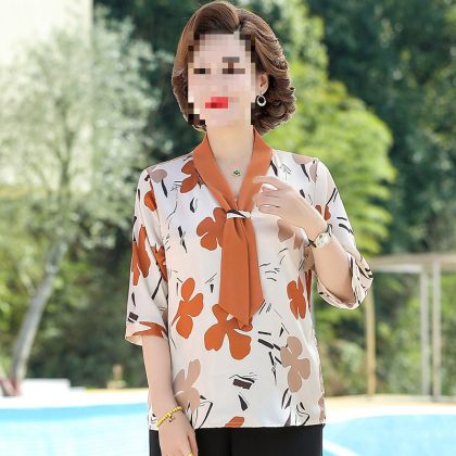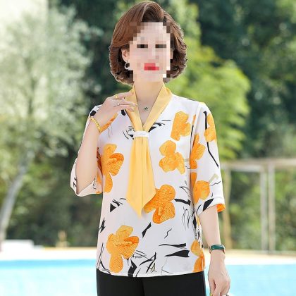 nameOriginal | Middle-aged mother's spring and autumn mother's summer chiffon shirt western style long sleeve 50 middle-aged women's spring shirt |