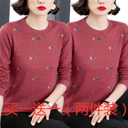 | nameOriginal | Middle-aged pure cotton tops with round neck fashion print two-piece |