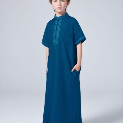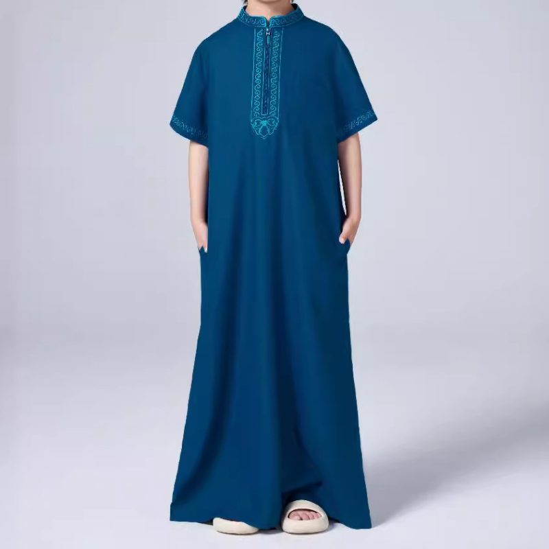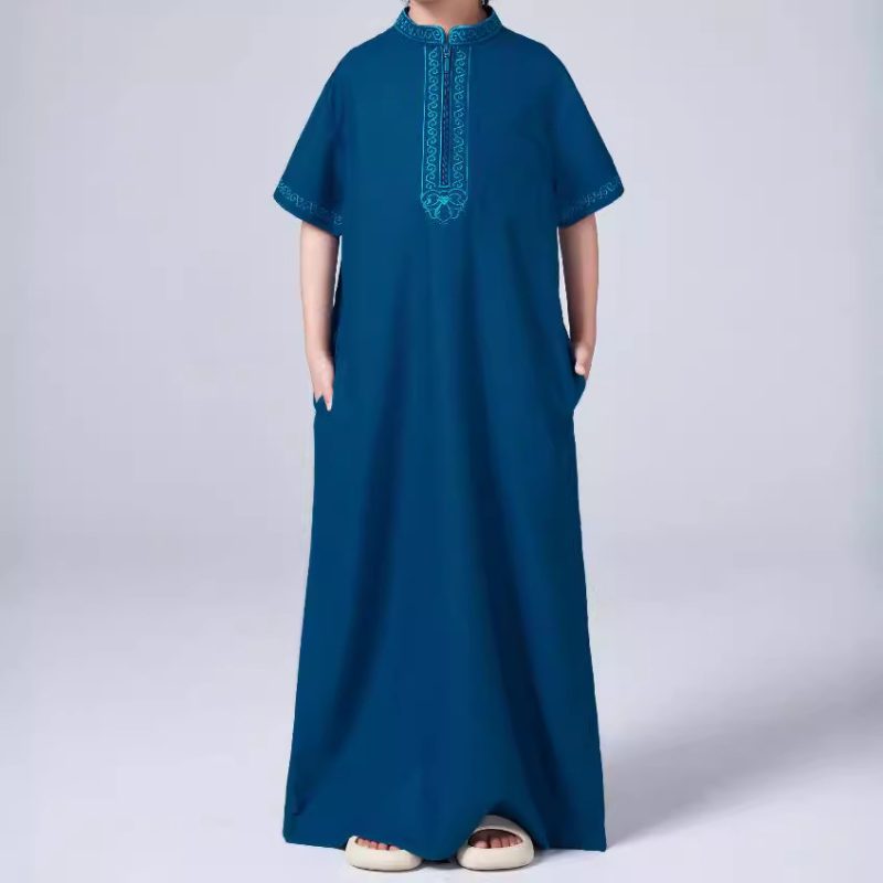 nameOriginal | Middle East Solid Color Embroidered Zipper Boy Loose Robe thobe MSL207 |