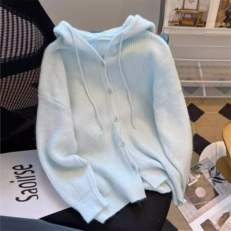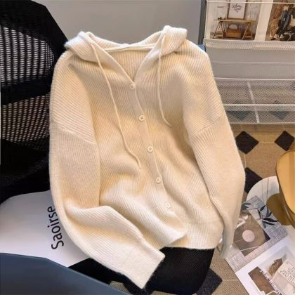 Milk Soft Waxy fufu Knitted Cardigan Women's Autumn and Winter New Slimming Hooded Elegant Gentle Style Sweater Coat Women