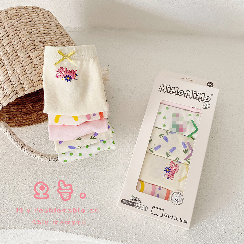 MIMO MIMO Daughter Children's Underwear Boneless Cotton Class A Baby Boxer Bottoming Shorts INS Factory Outlet
