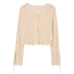 Mimuzi's homemade apricot v-neck knitted cardigan jacket for women in summer, lazy and sweet loose long-sleeved top