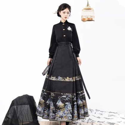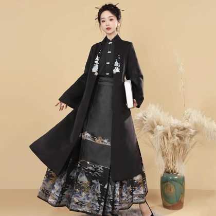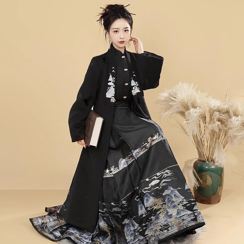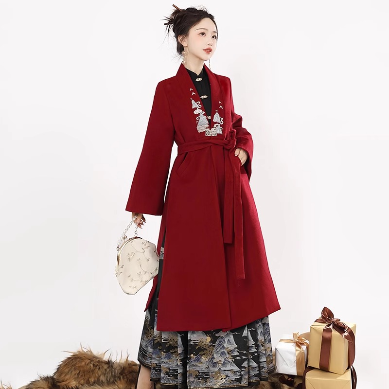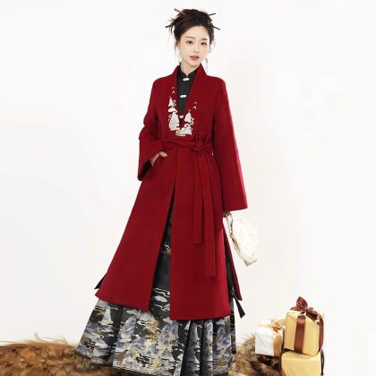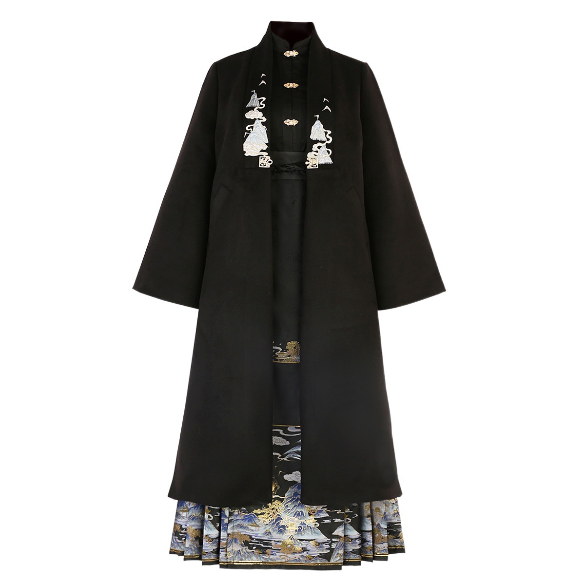 nameOriginal | Mingyue original Hanfu women's improved new Chinese style Chinese style Han element woven gold vest skirt coat woolen coat autumn and winter |