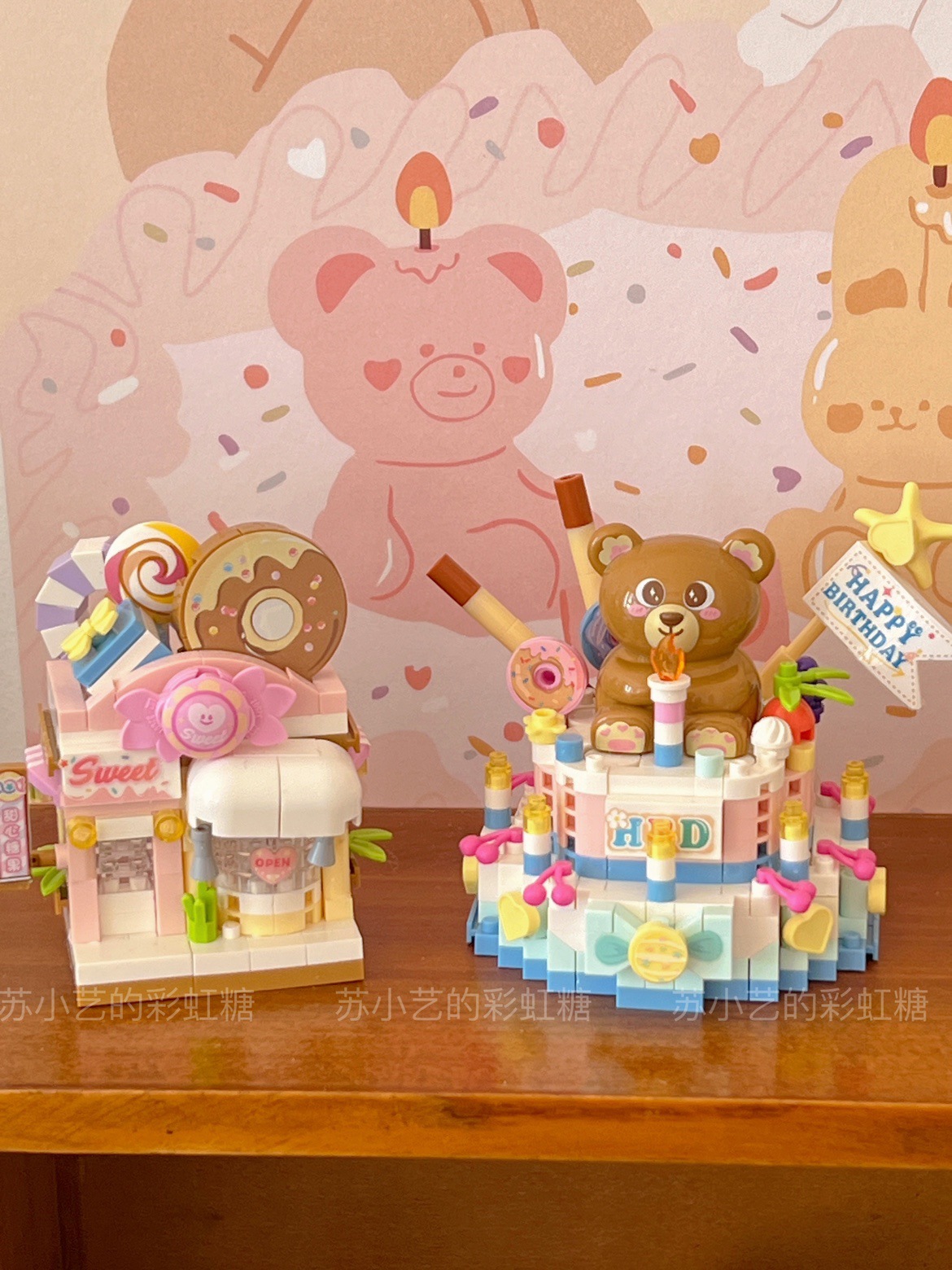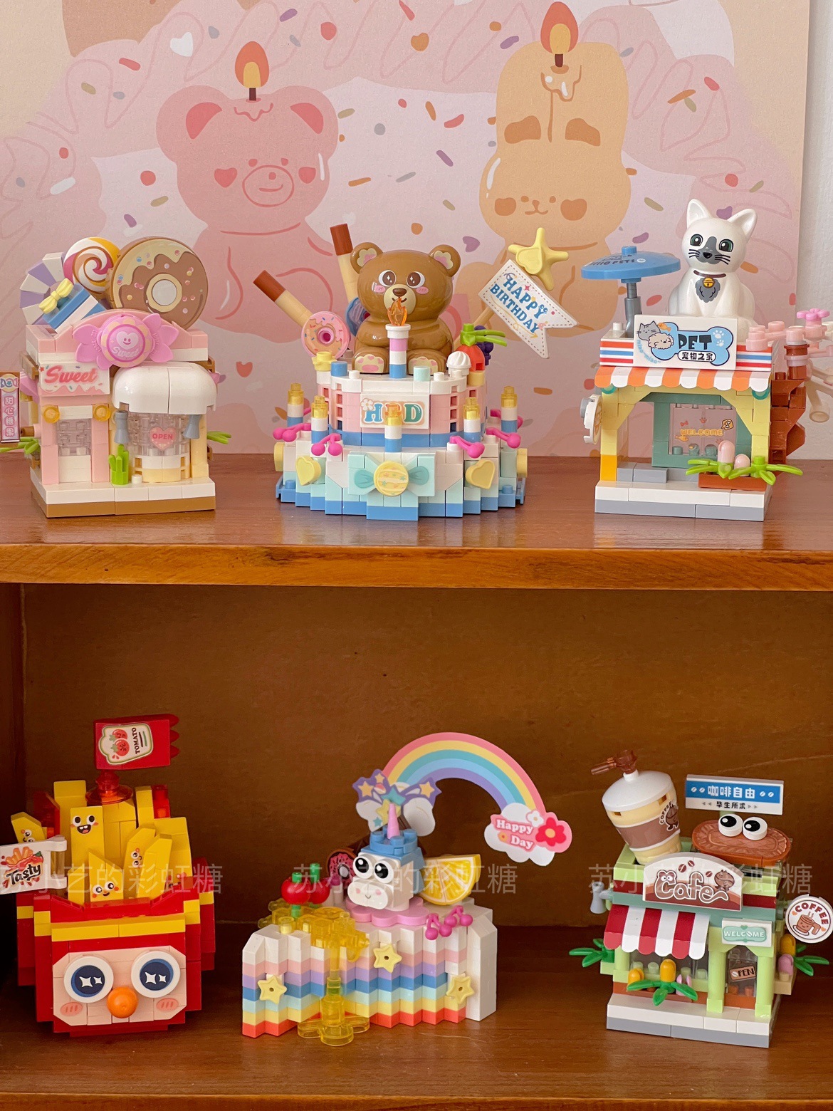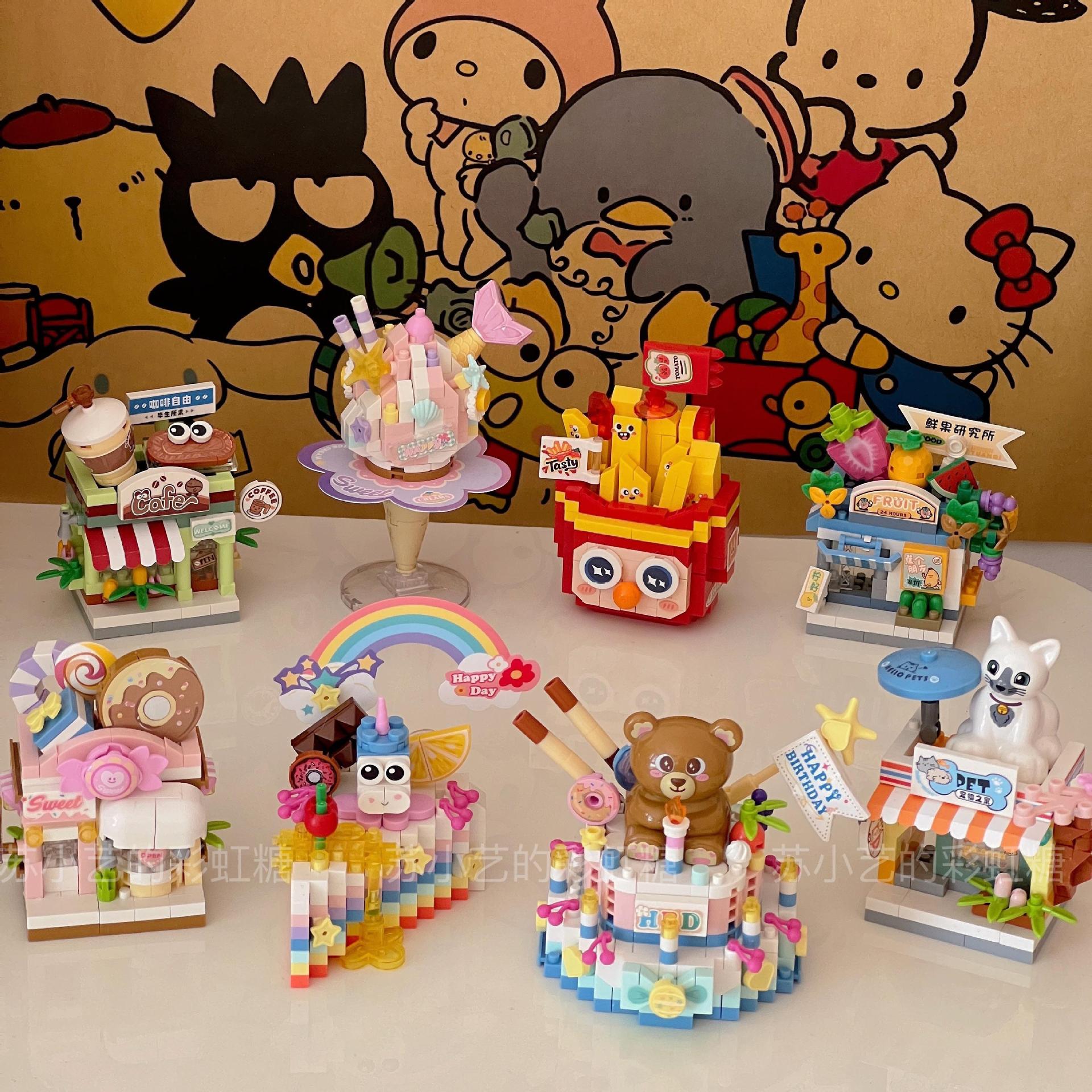 | nameOriginal | Mini bear birthday cake Street View building blocks ~ assembling toys small particles assembling candy shop Educational Assembly cross |