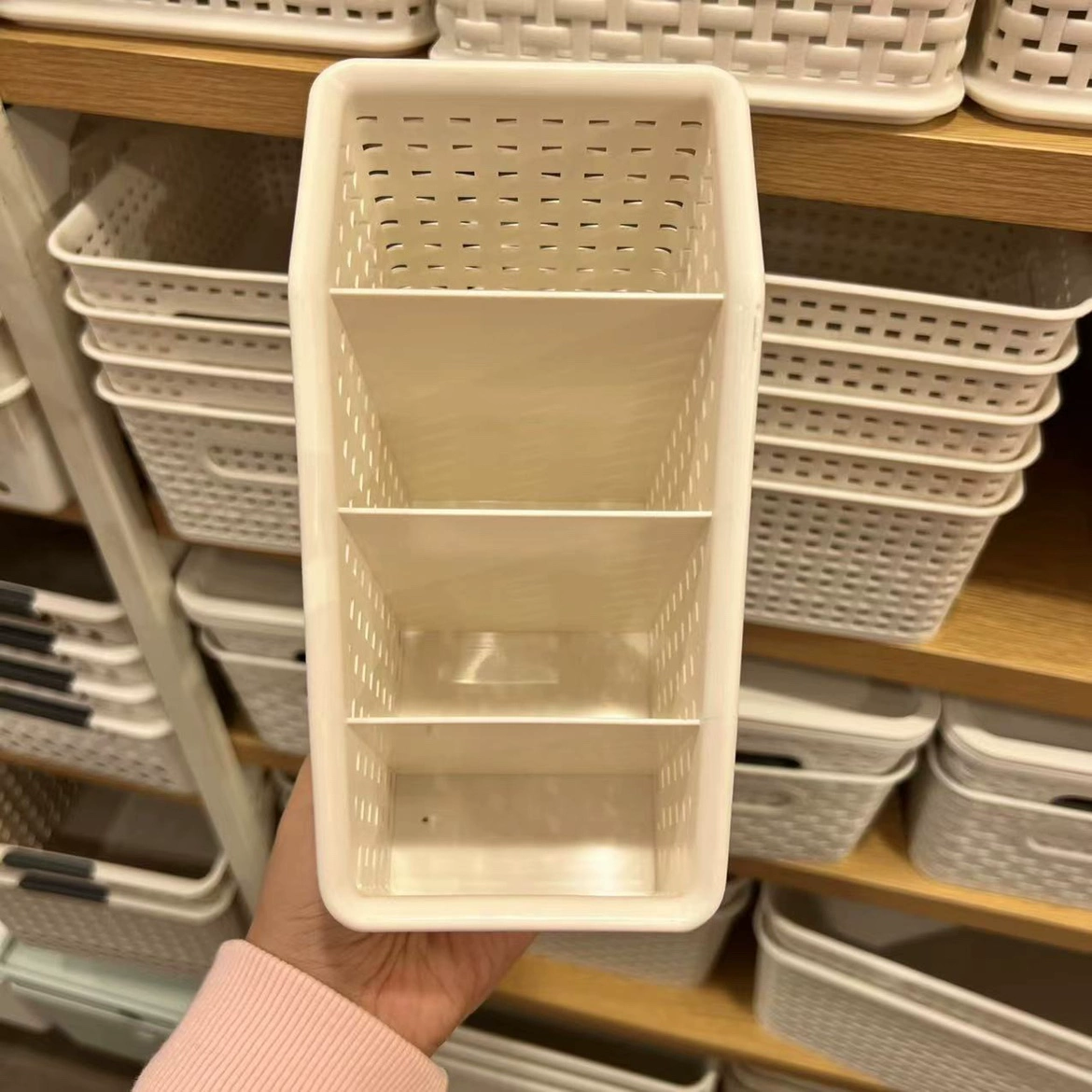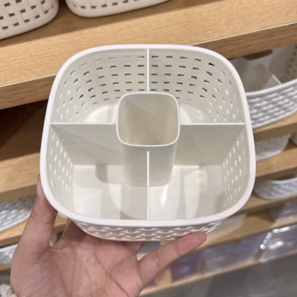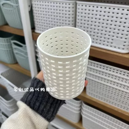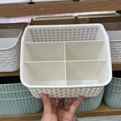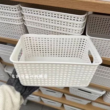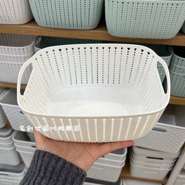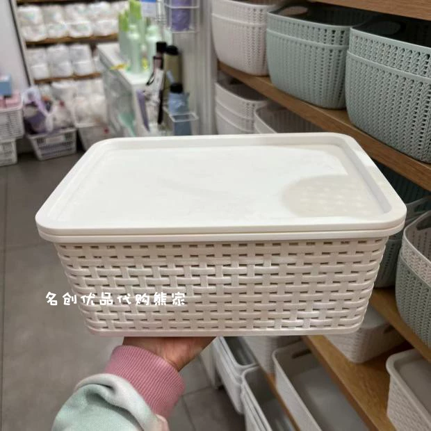 Miniso Plaid Storage Basket Storage Box Imitation Rattan