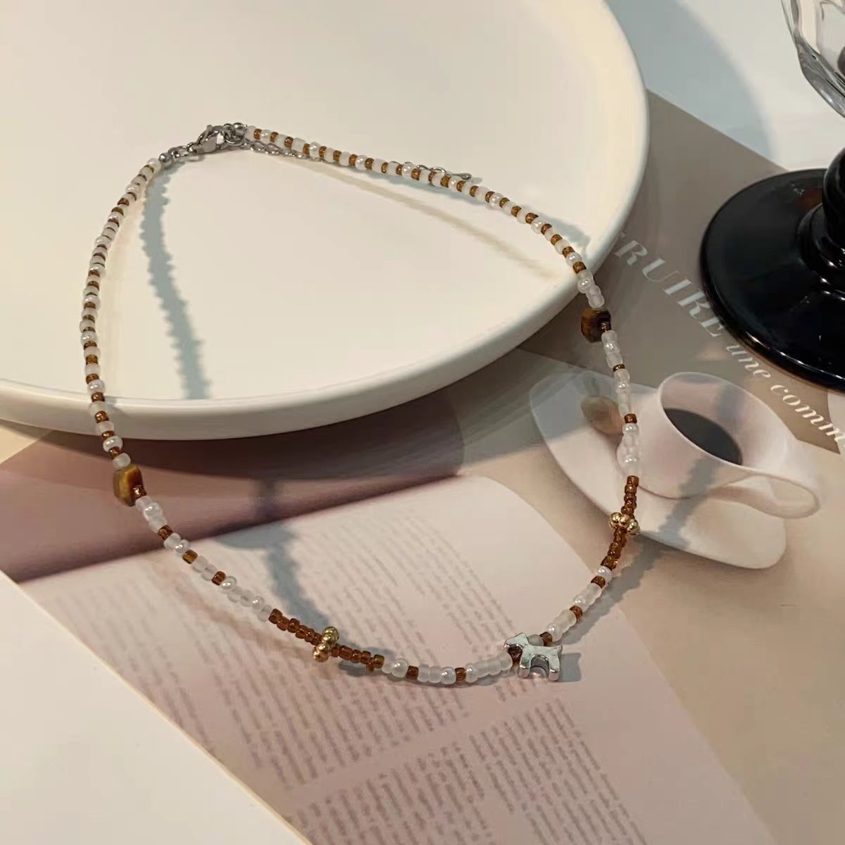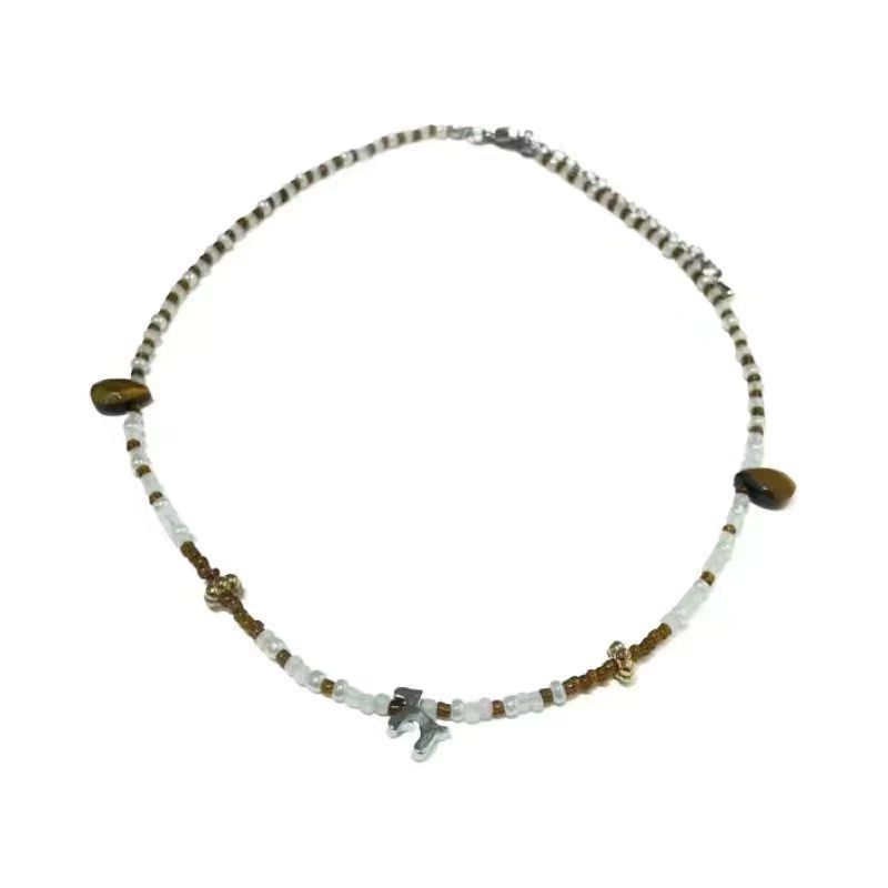 | nameOriginal | Mint Brown Trojan Horse Beaded Necklace Women's Accessories Sweet Cool All-match Trendy Light Luxury Niche Design 2024 Summer Clavicle Chain |