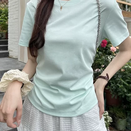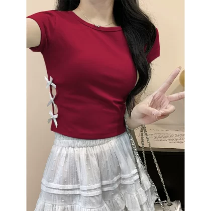 | nameOriginal | Mint green hollow short sleeves with chic tight bow |