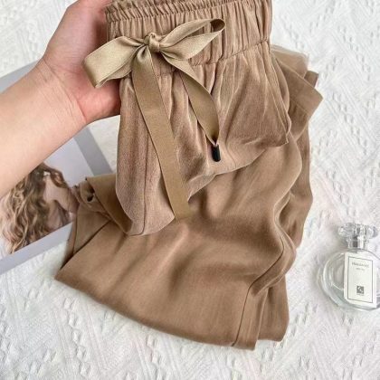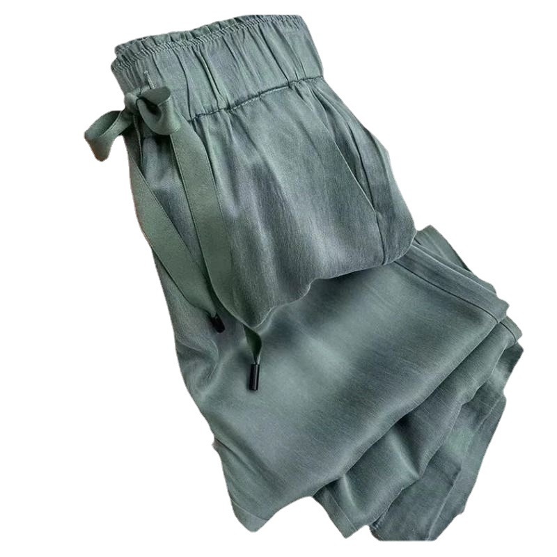 | nameOriginal | Mint Green Ice Silk Narrow Wide Leg Pants Women's Summer Thin New Loose Straight Hide Meat High Waist Anti-mosquito Pants |