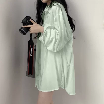 | nameOriginal | Mint Green Loose Little Mambo Style Long Sleeve Shirt |