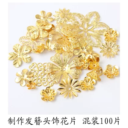 | nameOriginal | Mixed pack of 100 large and small golden flower pieces, silver-plated flower holders, butterflies, diy antique hair accessories, hairpin material pack |