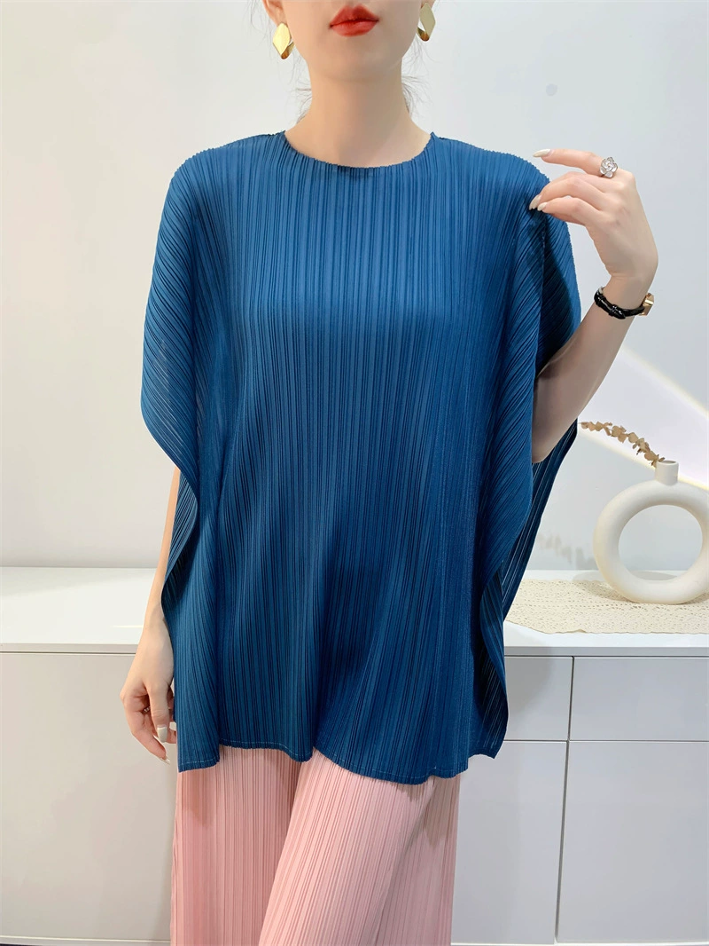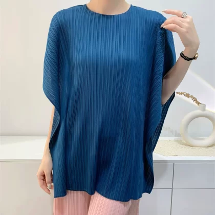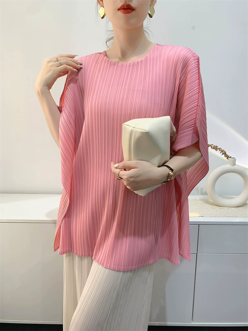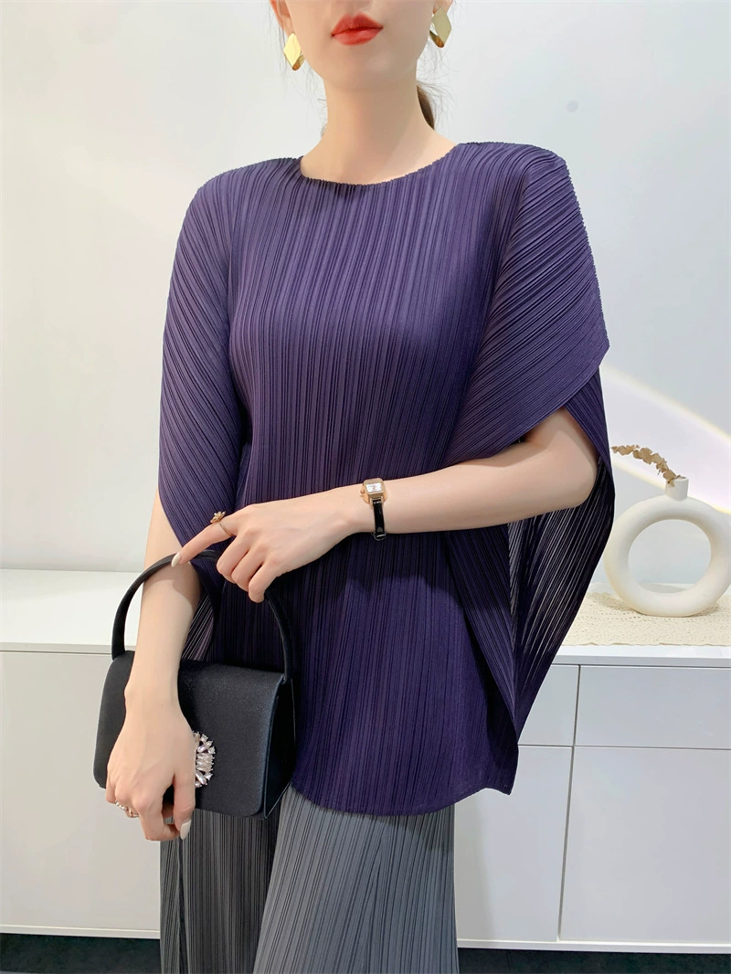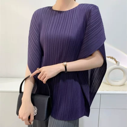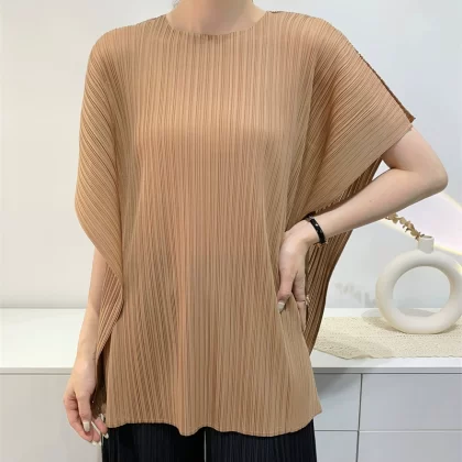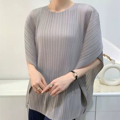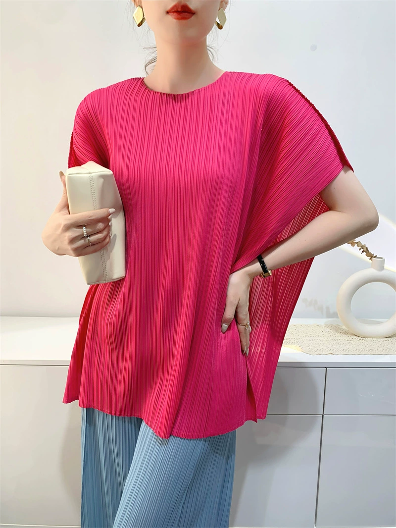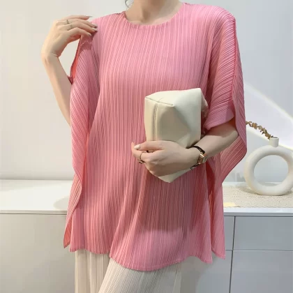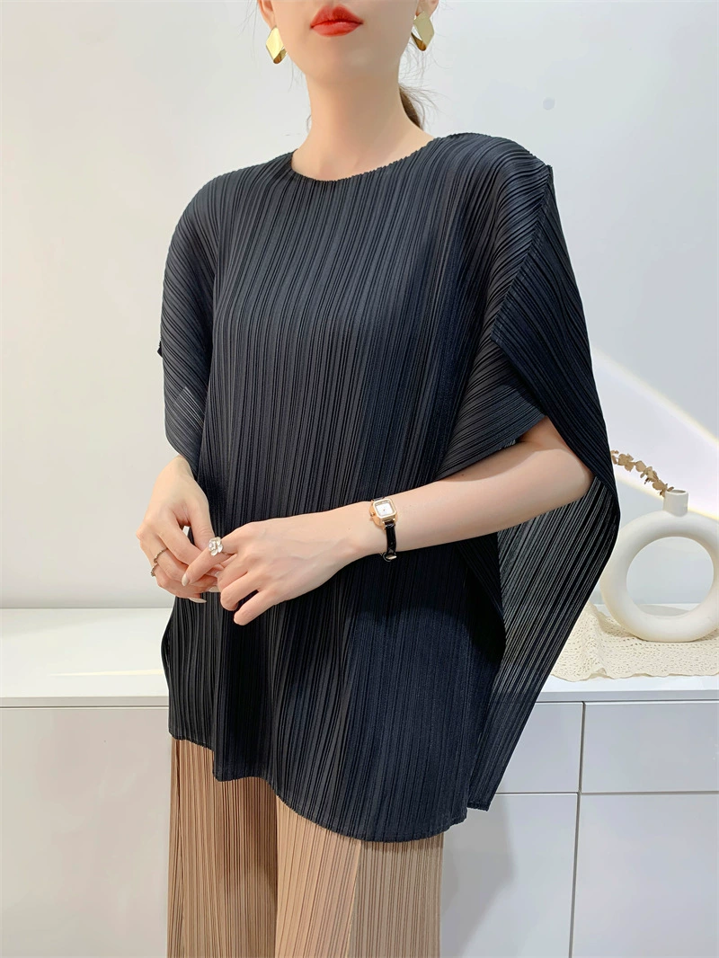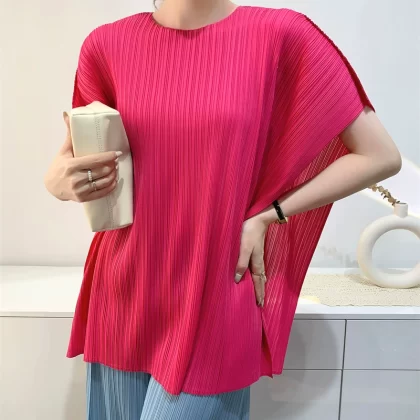 | nameOriginal | Miyake Design Pleated Top Women's 2024 Summer Large Size Loose Slim Casual Slit Round Neck Short Sleeve T-Shirt |