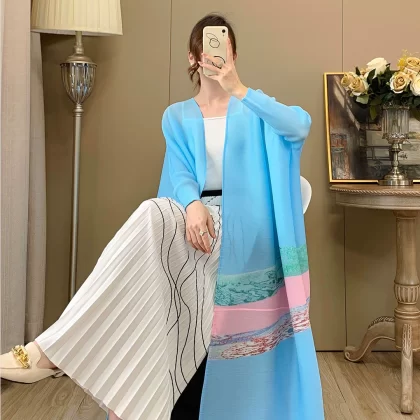 | nameOriginal | Miyake long windbreaker jacket for women summer style elegant pleated loose large size printed Middle Eastern cardigan robe trendy |