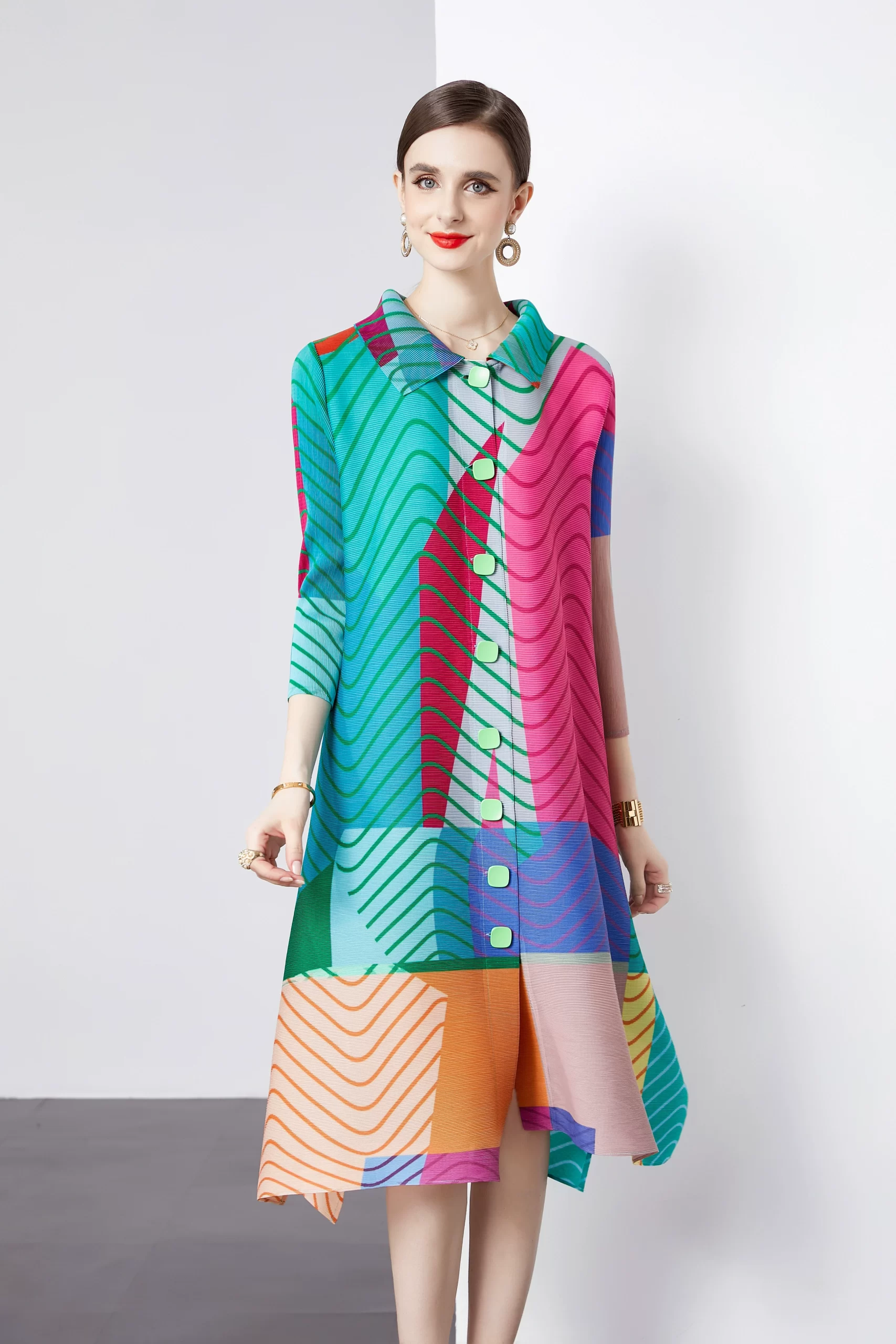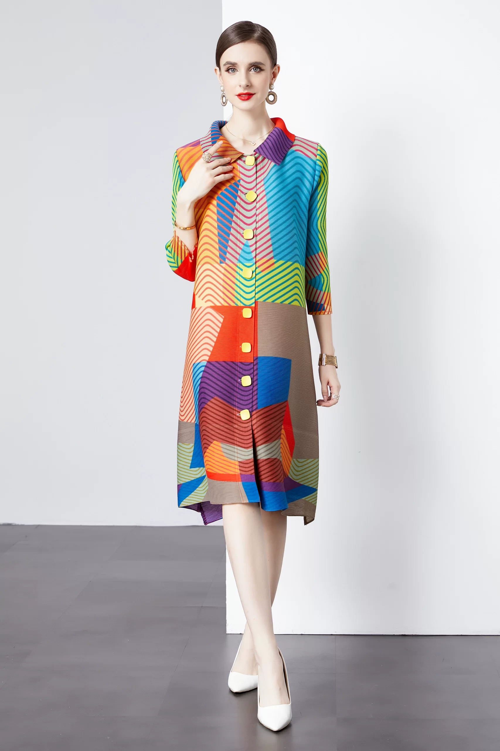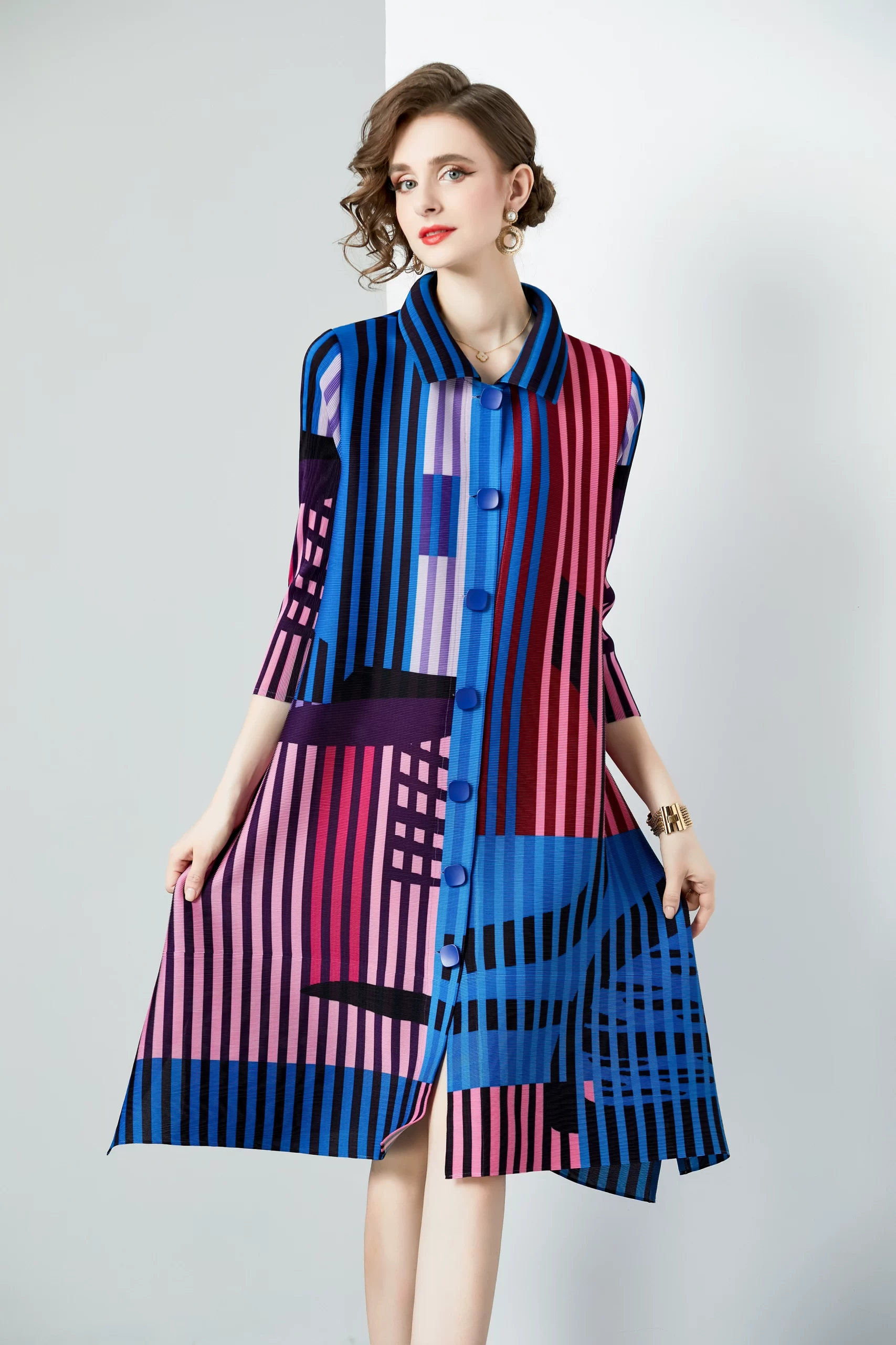 Miyake pleated slimming and age-reducing nine-quarter sleeve dress