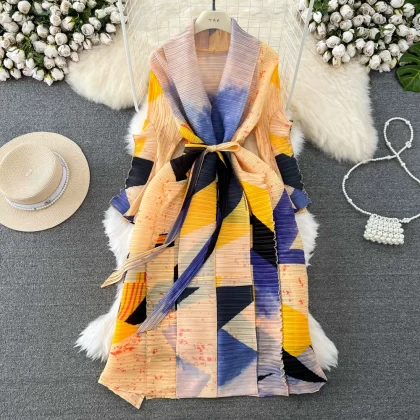 | nameOriginal | Miyake pleated vintage long-sleeved a-line print dress |