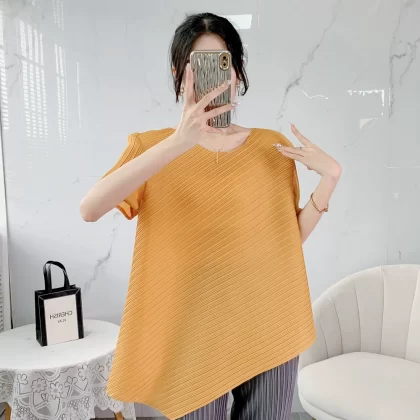| nameOriginal | Miyake top Irregular sleeveless spring and summer style unique design niche pleated round neck slim pleated t-shirt for women |