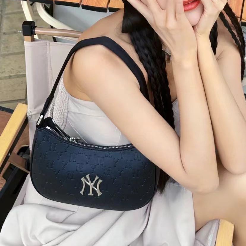 MLB Bag Women's NY Yankees Leather Embossed Underarm Bag High-end Fashionable All-match Commuter Hand Shoulder Bag