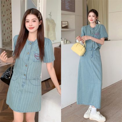 MM Striped Shirt Slightly Fat High Waist Hip Cover Fashion Suit