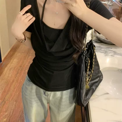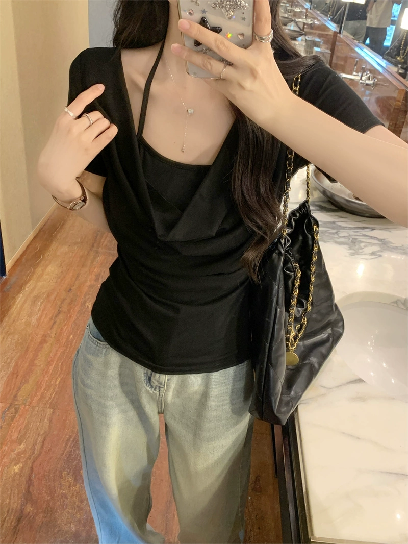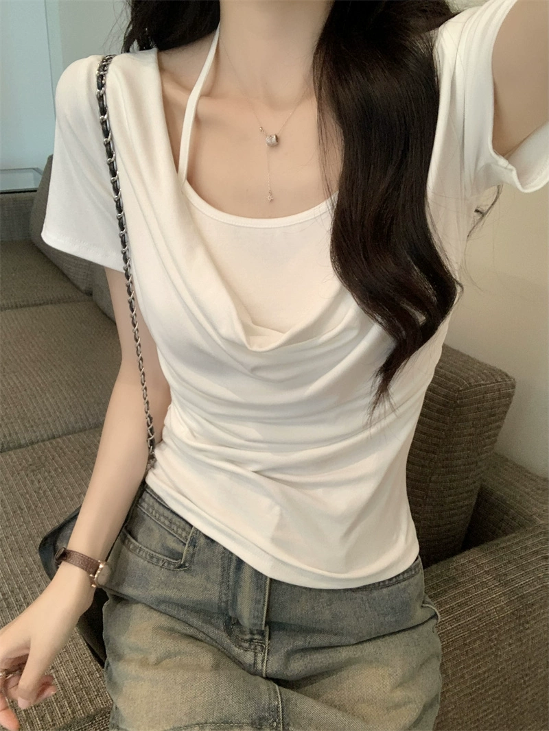 | nameOriginal | MM white summer halterneck sweet and spicy slimming short-sleeved T-shirt |