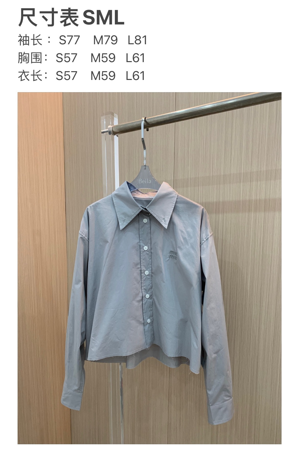 mm's 24ss new simple long sleeve short loose bottoming single-wear embroidered lapel shirt women's fashion all-matching
