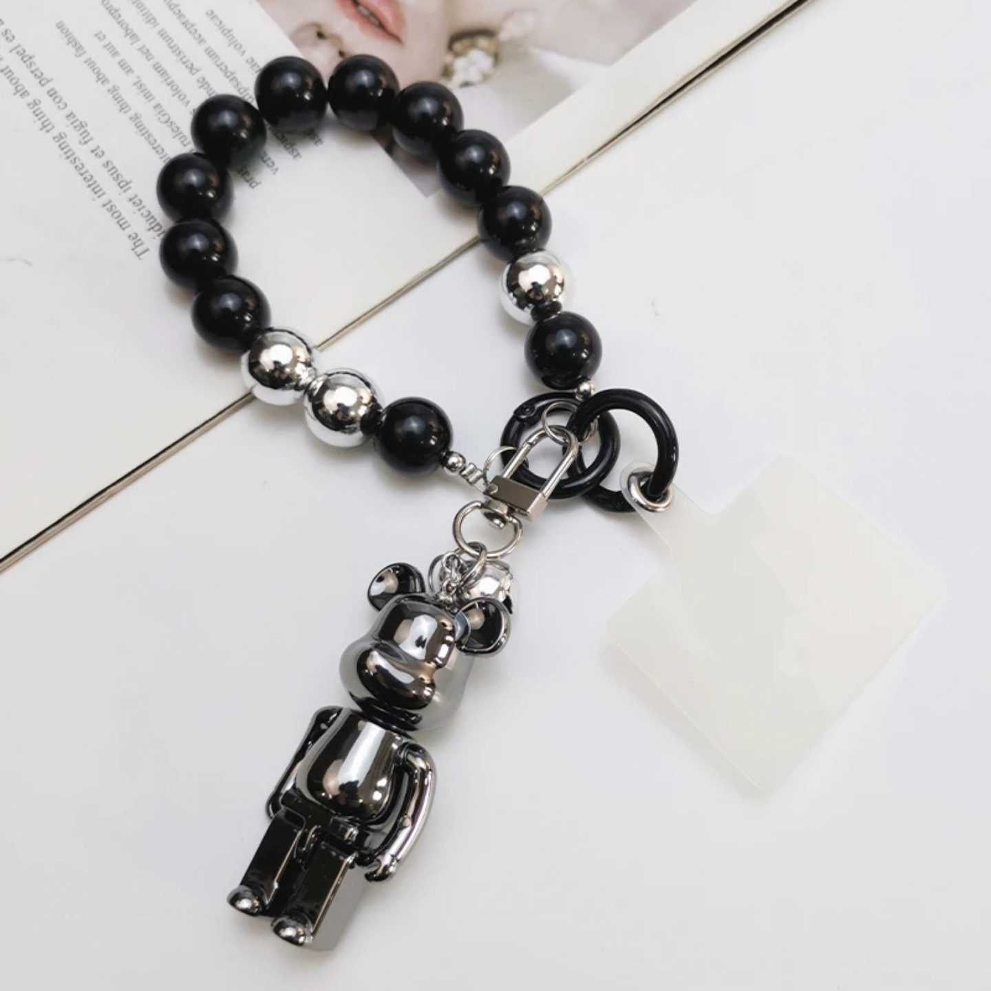 | nameOriginal | Mobile phone lanyard short wrist beaded lanyard electroplated Bell violent bear pendant pendant mobile phone case anti-lost lanyard |