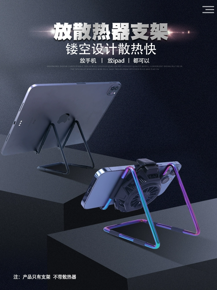 | nameOriginal | Mobile phone radiator stand simple desktop Ipad tablet Kindle game chasing drama black Switch vertical stand |