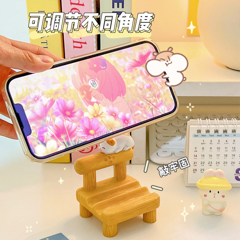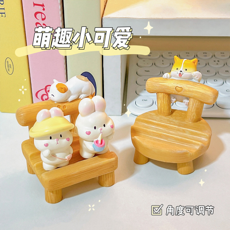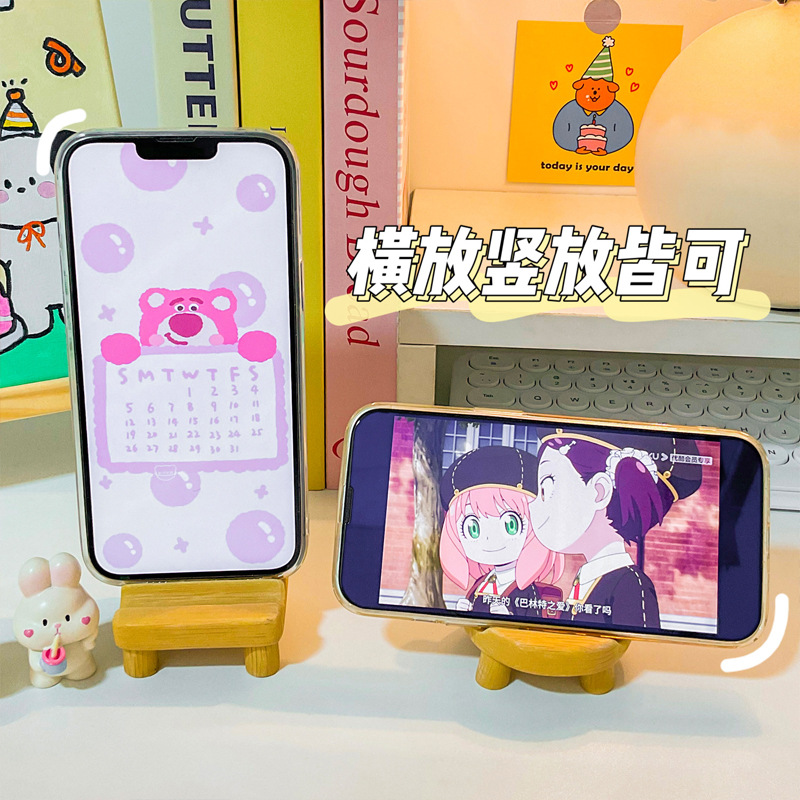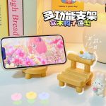 Mobile Phone Stand Desktop Small Ornaments Bench Small Chair Cute Lazy Support Frame Creative Stool Wooden Mobile Phone Stand