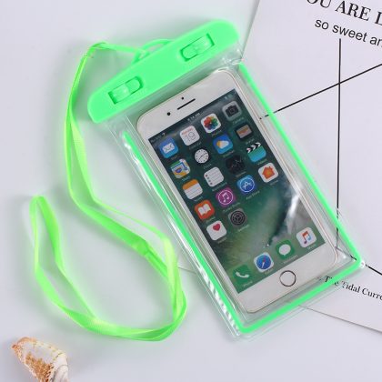 حقيبة الهاتف المحمول المقاومة للماء للسباحة في الهواء الطلق والغوص والانجراف وشاشة تعمل باللمس والرد على كاميرا الهاتف وحقيبة مقاومة للماء بلون شفاف ومضيئة من البولي فينيل كلوريد