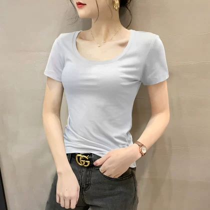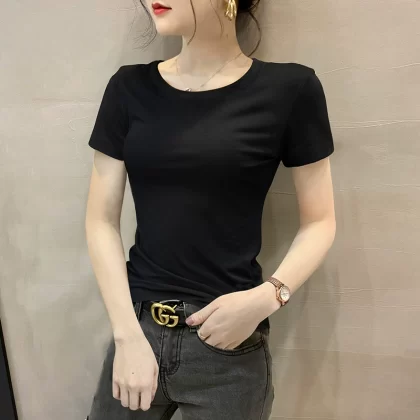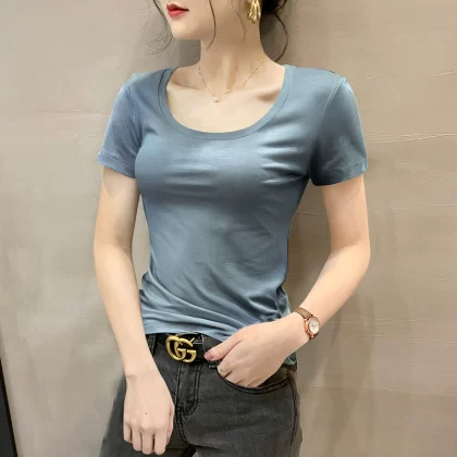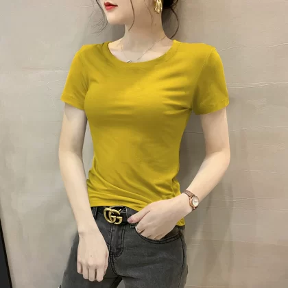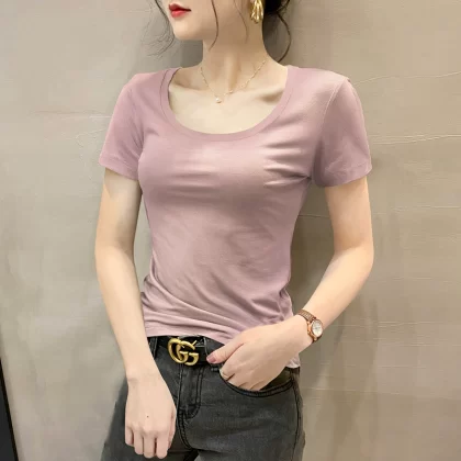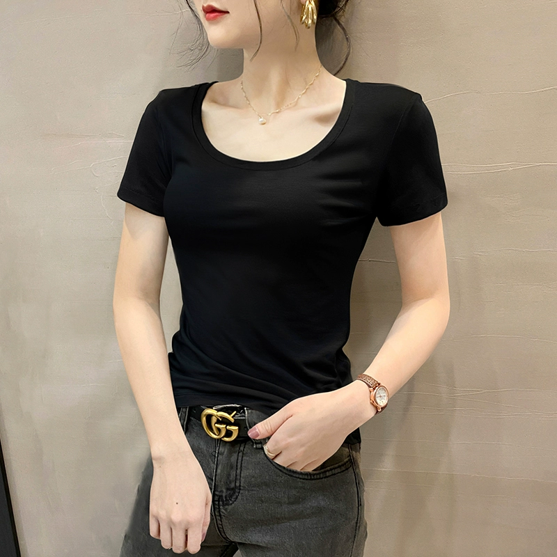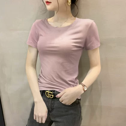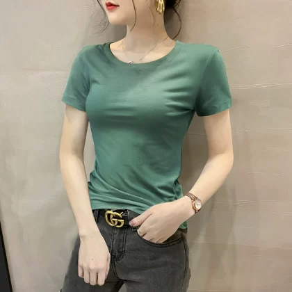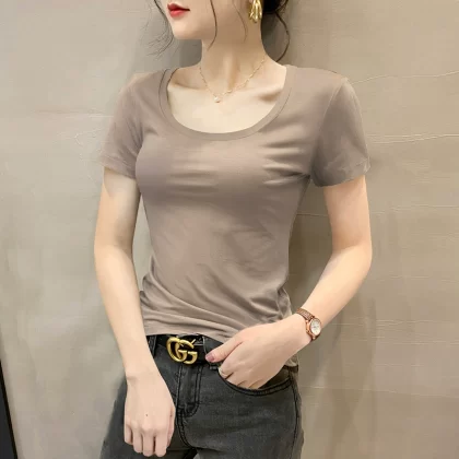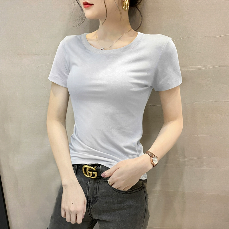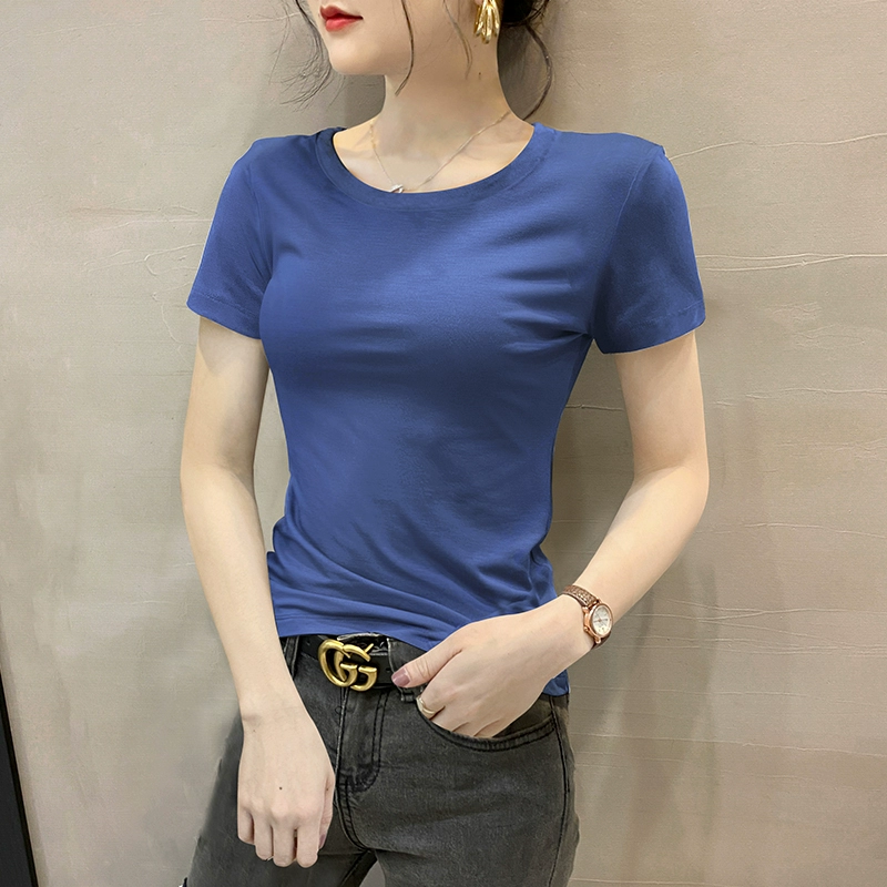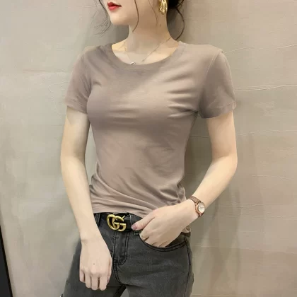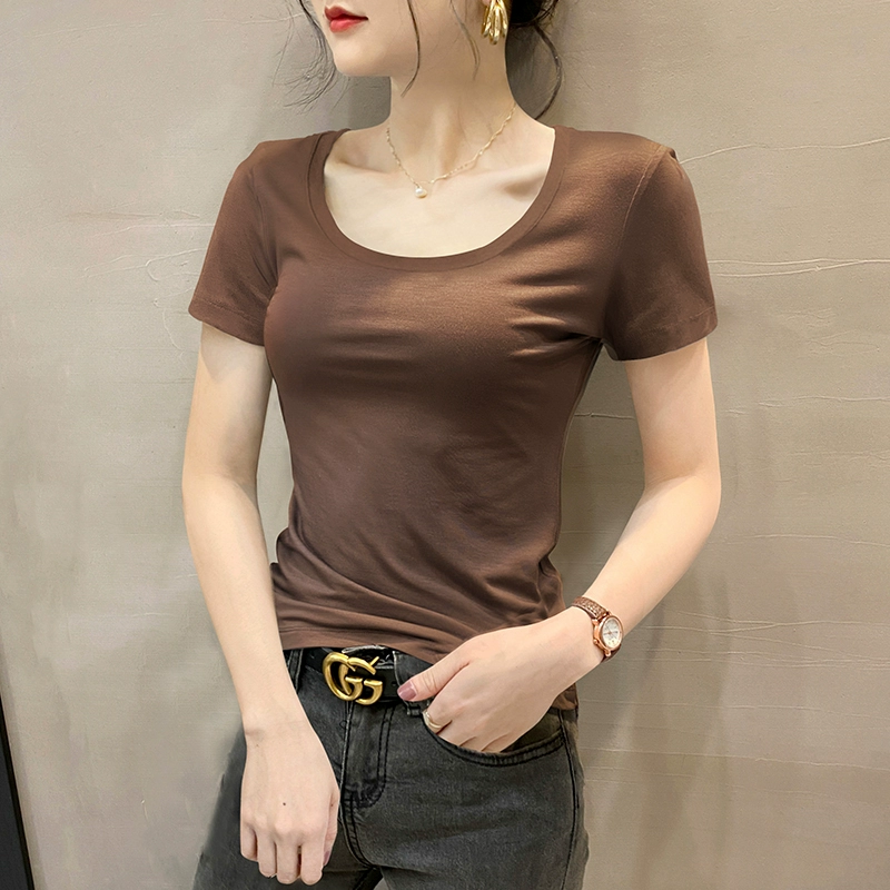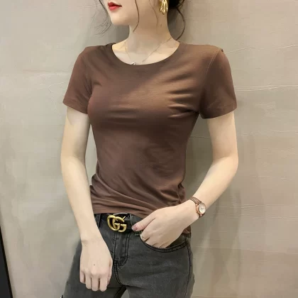 Modal brown summer half-sleeved slim top T-shirt