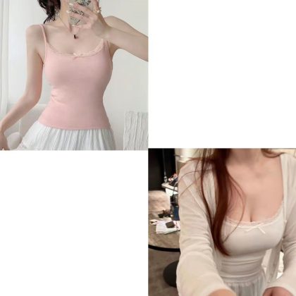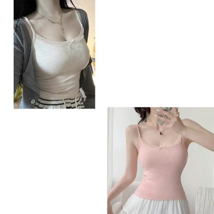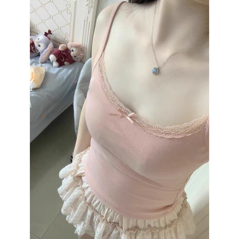 Modal Cotton Pure Sexy Lace Bow Camisole Women's Summer plus size Slim-fit Slim-fit Base Top