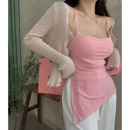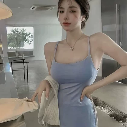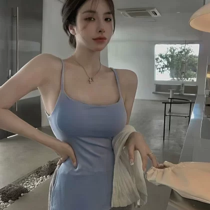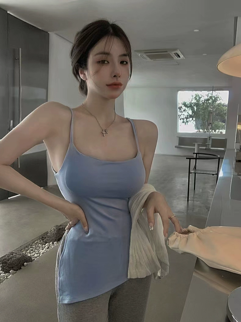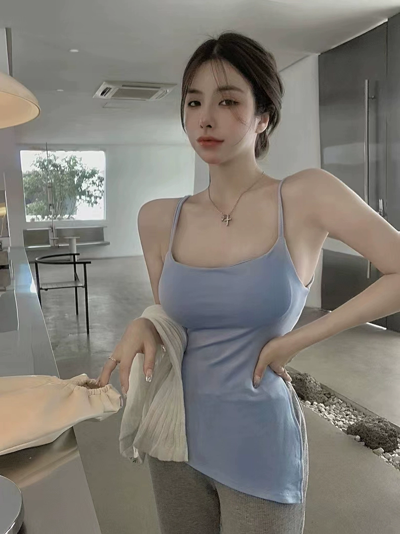 Modal large size black slim fit slit camisole