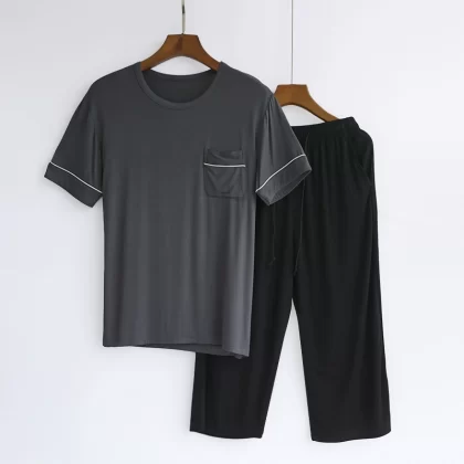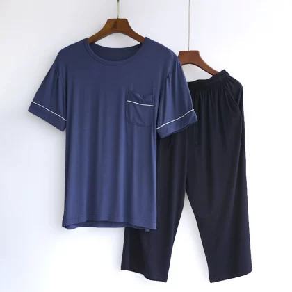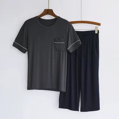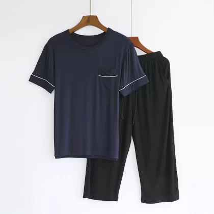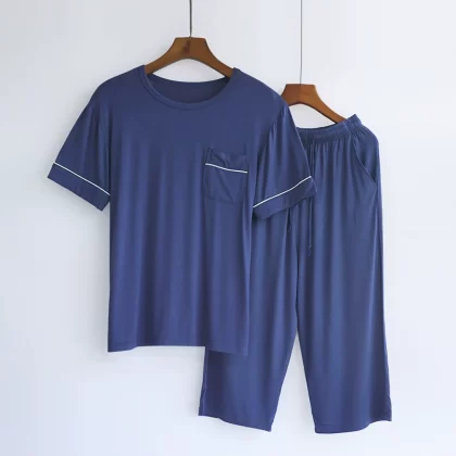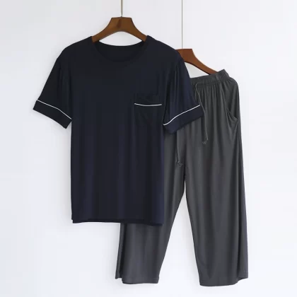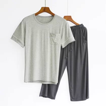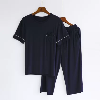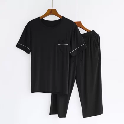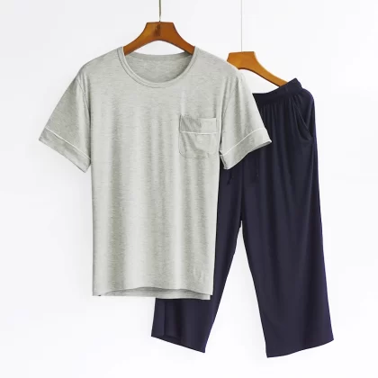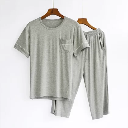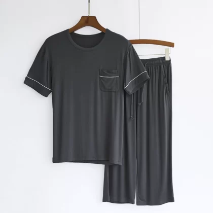 | nameOriginal | Modal men's cropped trousers, round neck casual solid color pajamas |