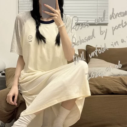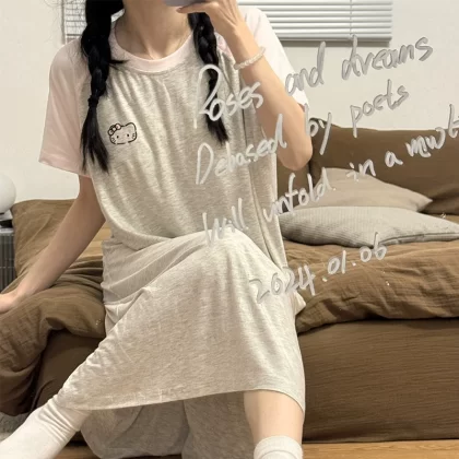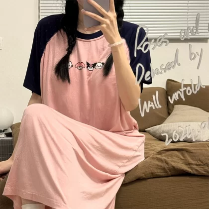 | nameOriginal | Modal short-sleeved nightgown for women summer thin dress with breast pads ice silk pajamas cute home wear summer |