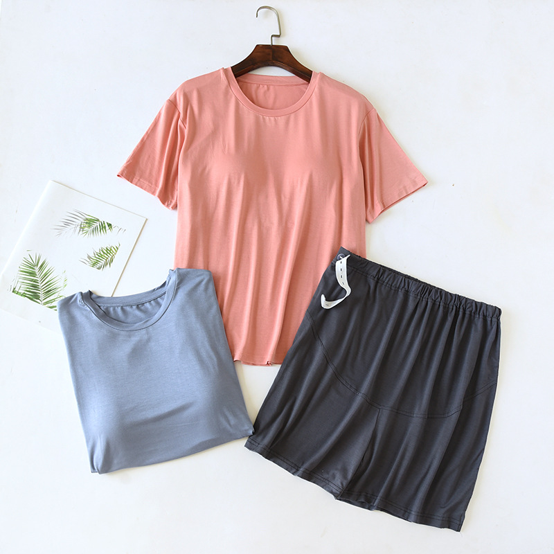 Modal Short-sleeved Shorts with Chest Pad Women's Summer Thin Adjustable Abdominal Pants Postpartum Nursing Home Clothes