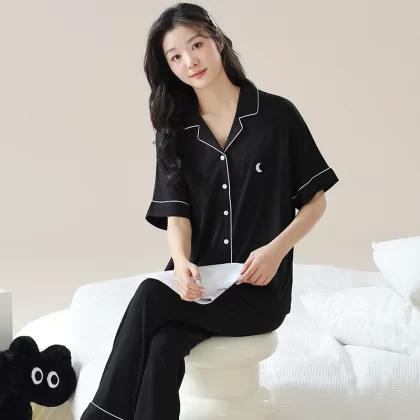 | nameOriginal | Modal women's spring and summer black home wear pajamas |