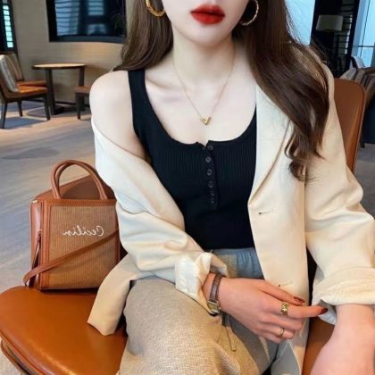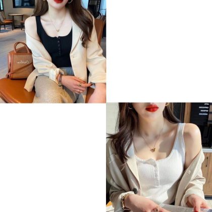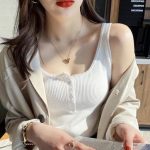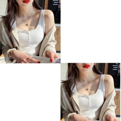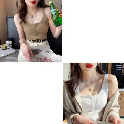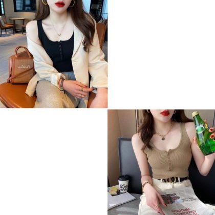 nameOriginal | Model Cotton Button Vest with Front Buckle Camisole Women's Knitted Vest with Threaded All-match Base Shirt for Women |