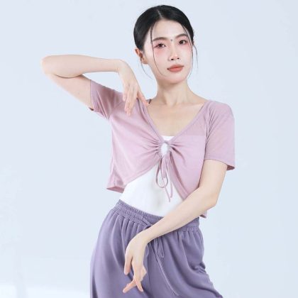 | nameOriginal | Modern Dance Practice Costume Top Adult Drawstring Lace Cardigan Female Body Training Dancing Summer Costume |