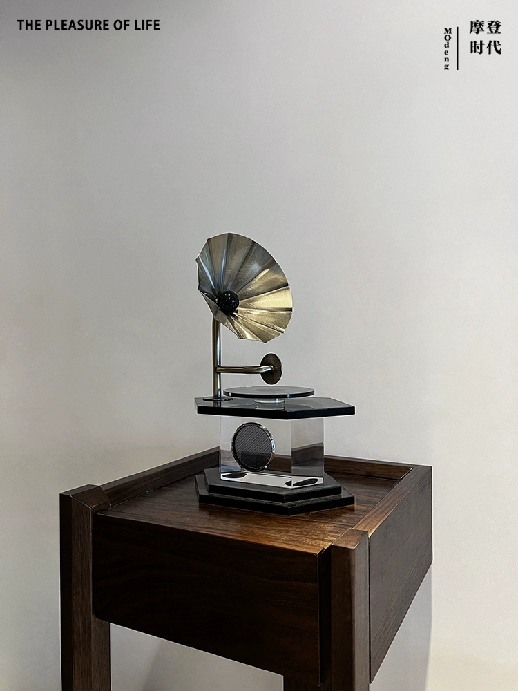 | nameOriginal | Modern simple light luxury crystal retro gramophone ornaments model room office creative cd record player decorations |