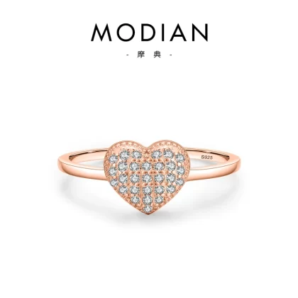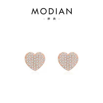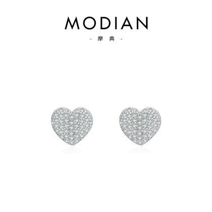 | nameOriginal | MODIAN s925 sterling silver micro-studded diamond love ring earrings simple niche light luxury heart-shaped set of decorations |