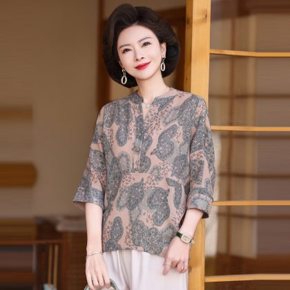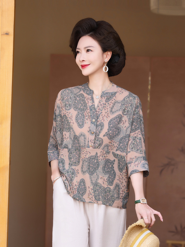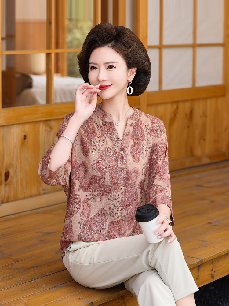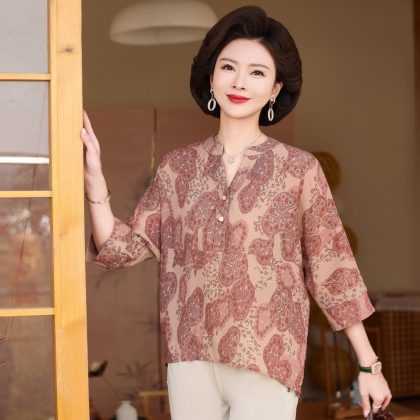 | nameOriginal | Mom Summer Short-sleeved T-shirt Women's 2024 Summer New Middle-aged and Elderly Women's Western Style Top Elegant Chiffon Shirt for Women |