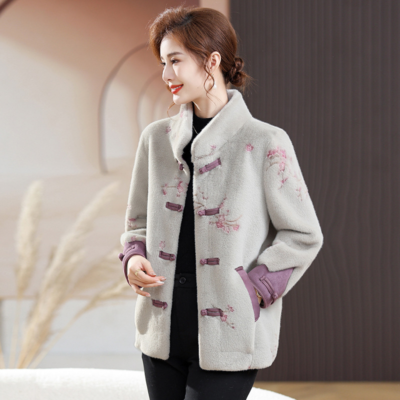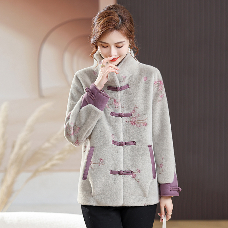 ملابس شتوية للأم معطف مخملي من المنك الصناعي على الطراز الغربي أنيق على الطراز الوطني ملابس نسائية في منتصف العمر وكبار السن ملابس الخريف والشتاء الدافئة غير الرسمية