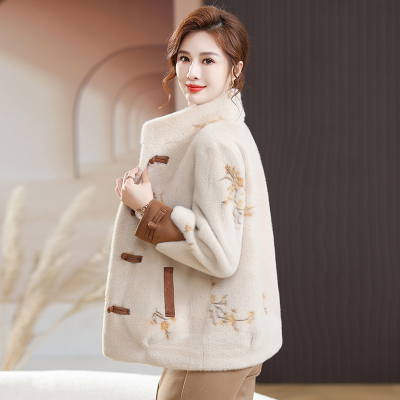 Mom winter wear western style faux mink velvet coat elegant National style middle-aged and elderly women's clothing autumn and winter casual warm top