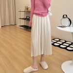 مومو الأخت الكبرى أوائل الربيع تنورة مطوية المرأة لطيف عالية الخصر تنورة ميدي تصميم التخسيس مزاجه تنورة ألف خط