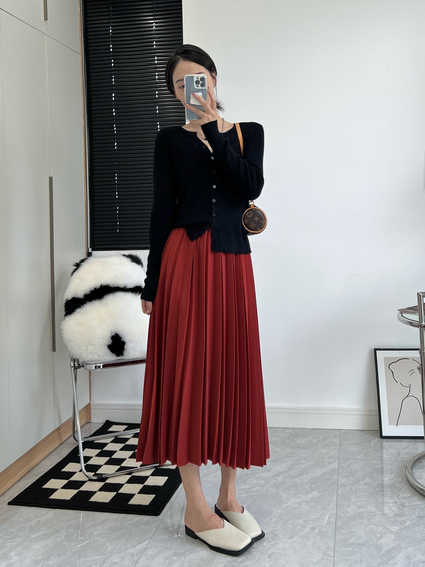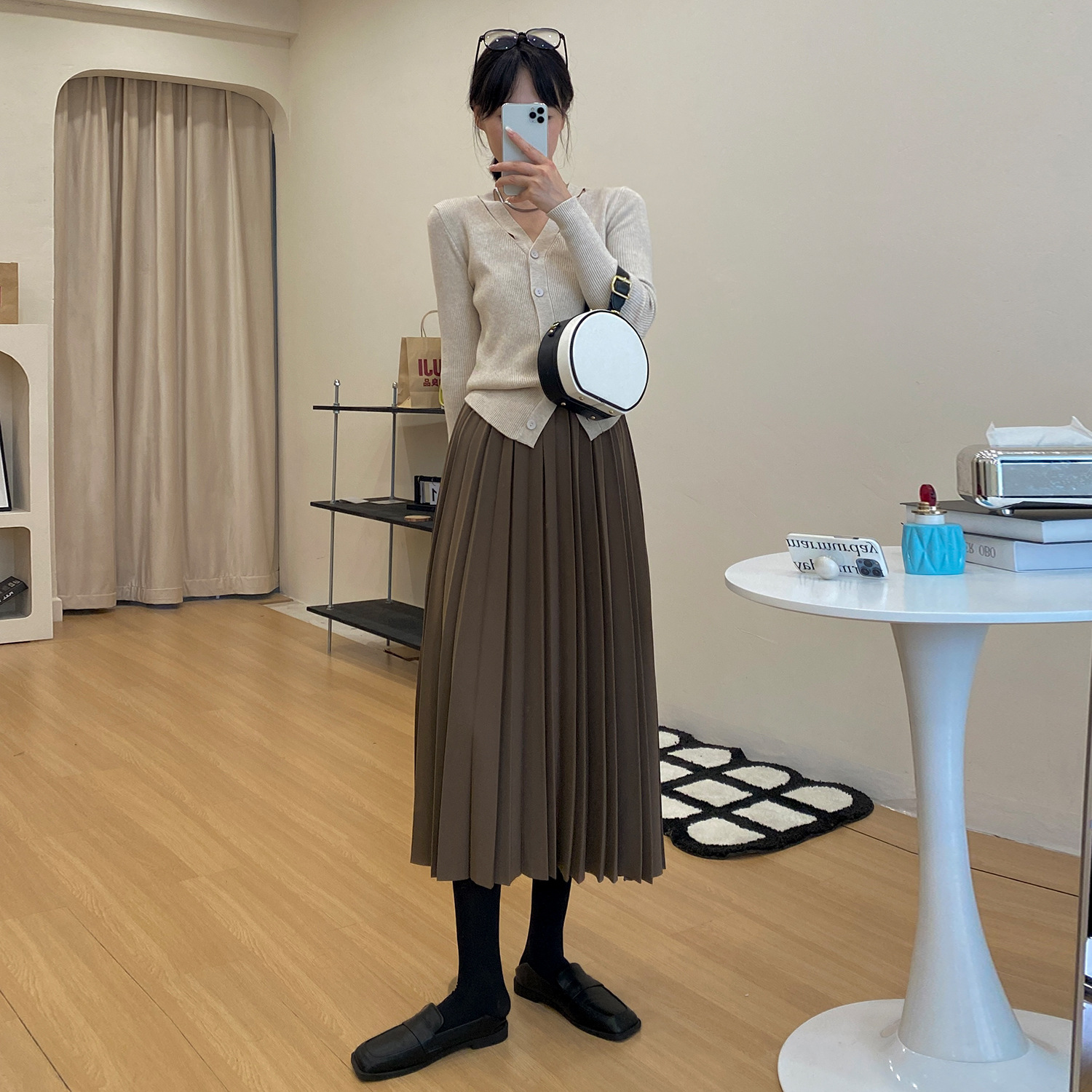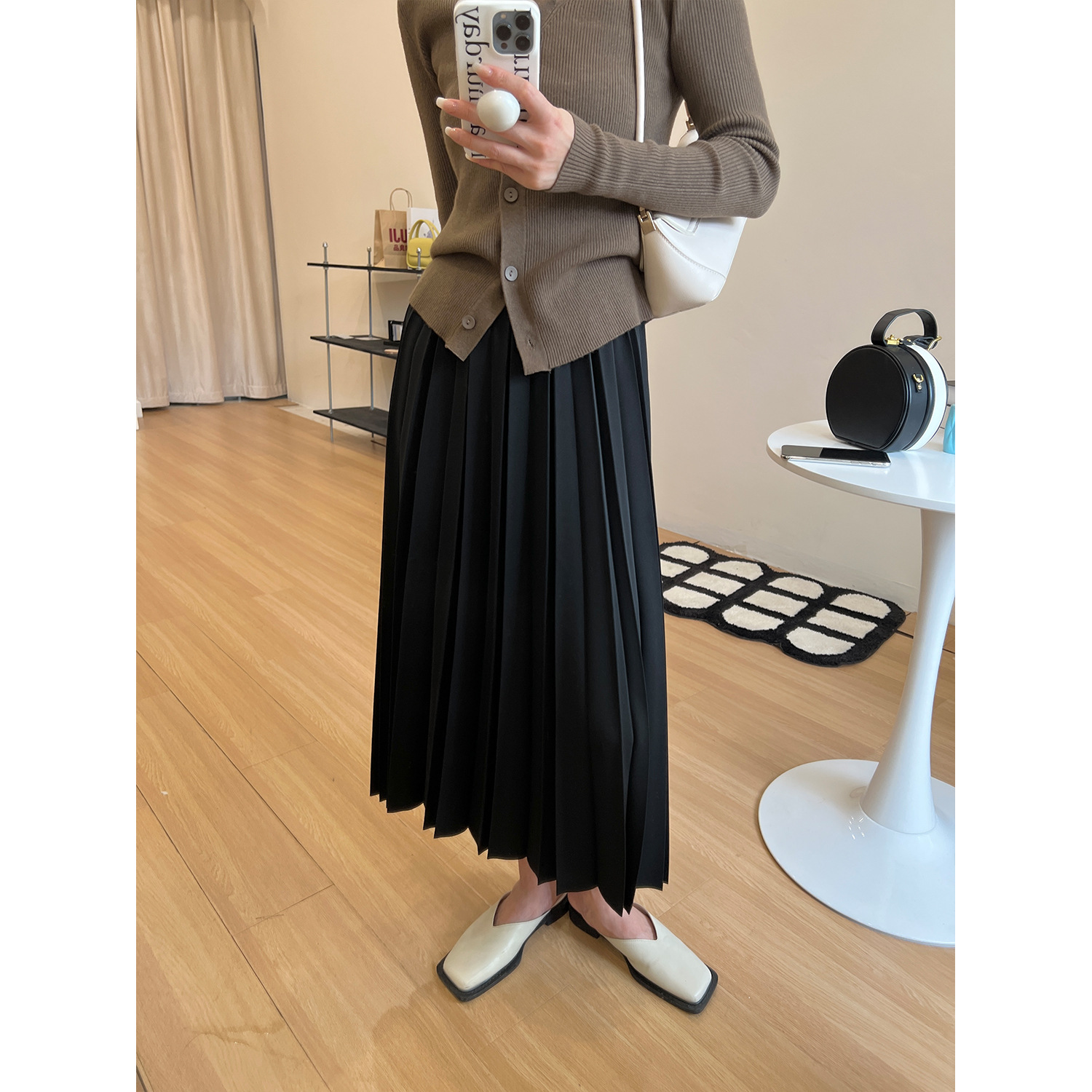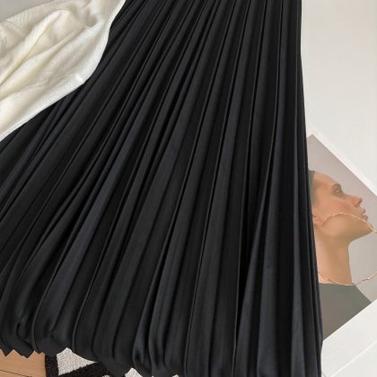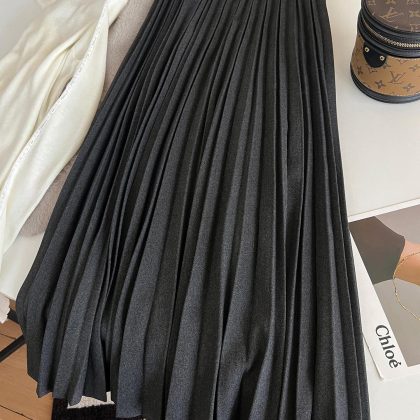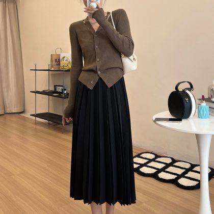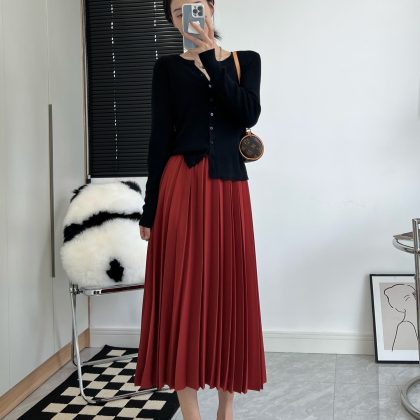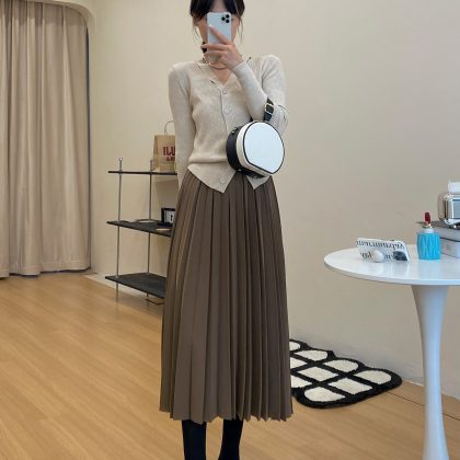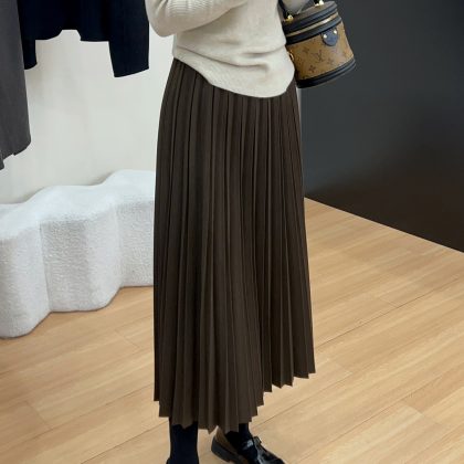 momo big sister early spring pleated skirt women's gentle high waist midi skirt slimming design temperament A- line skirt