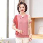 | nameOriginal | Mom's Knitted Short-sleeved T-shirt Western-style Ice Silk Shirt Middle-aged and Elderly Women's 2024 Summer Loose Thin Top |