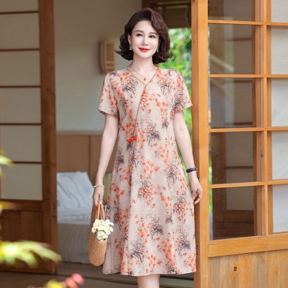 | nameOriginal | Mom's New Chinese Style dress Western Style Improved Cheongsam 2024 New Middle-aged and Elderly Women's Summer Short-sleeved Elegant Skirt |