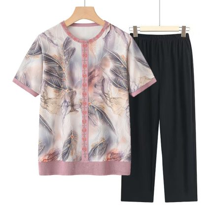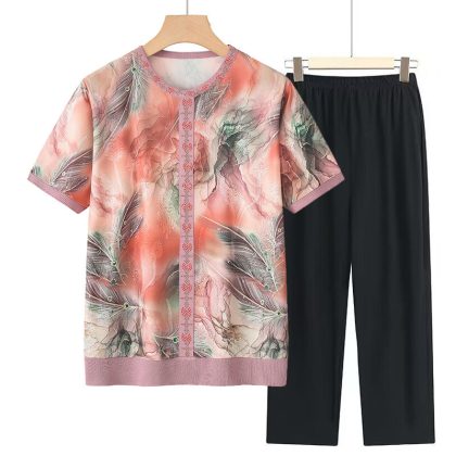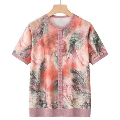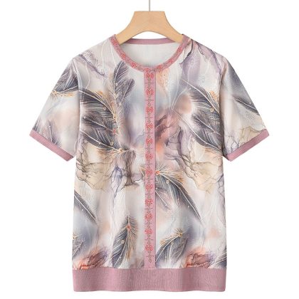 | nameOriginal | Mom's Spring and Autumn Printed Small Shirt Stylish Women's Summer Fashion Round Neck Base Shirt T-Shirt Top Middle-aged and Elderly |