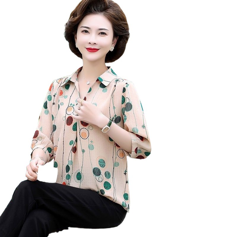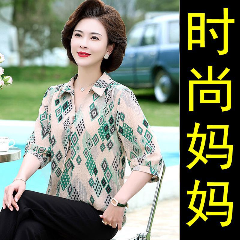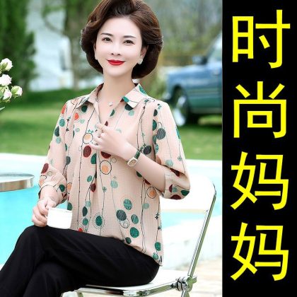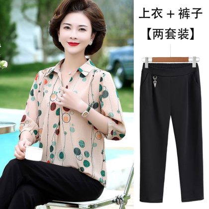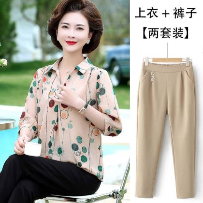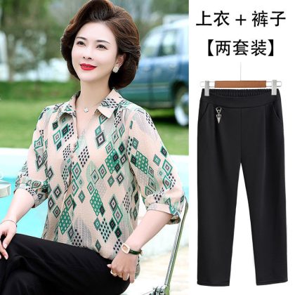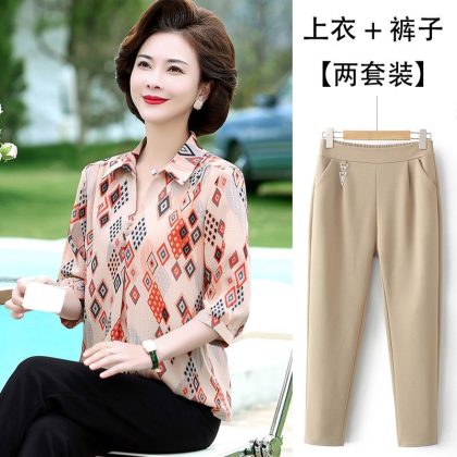 | nameOriginal | Mom's Summer Casual Short-sleeved Shirt Two-piece Suit New Style Middle-aged and Elderly Women's Summer plus size Top Thin Shirt |
